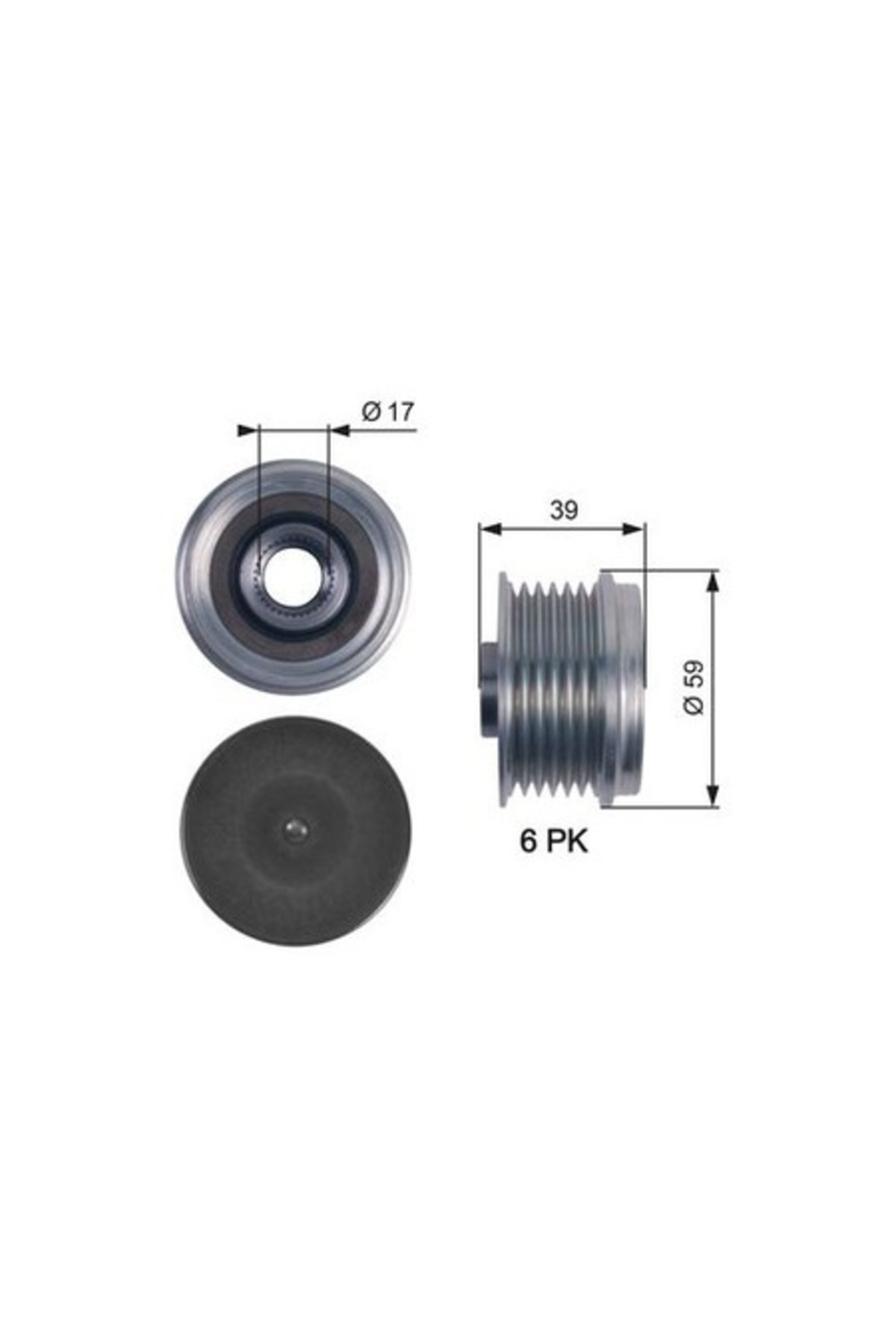 6 splines, outer diameter of 59mm, inner diameter of 17mm, and width of 39mm