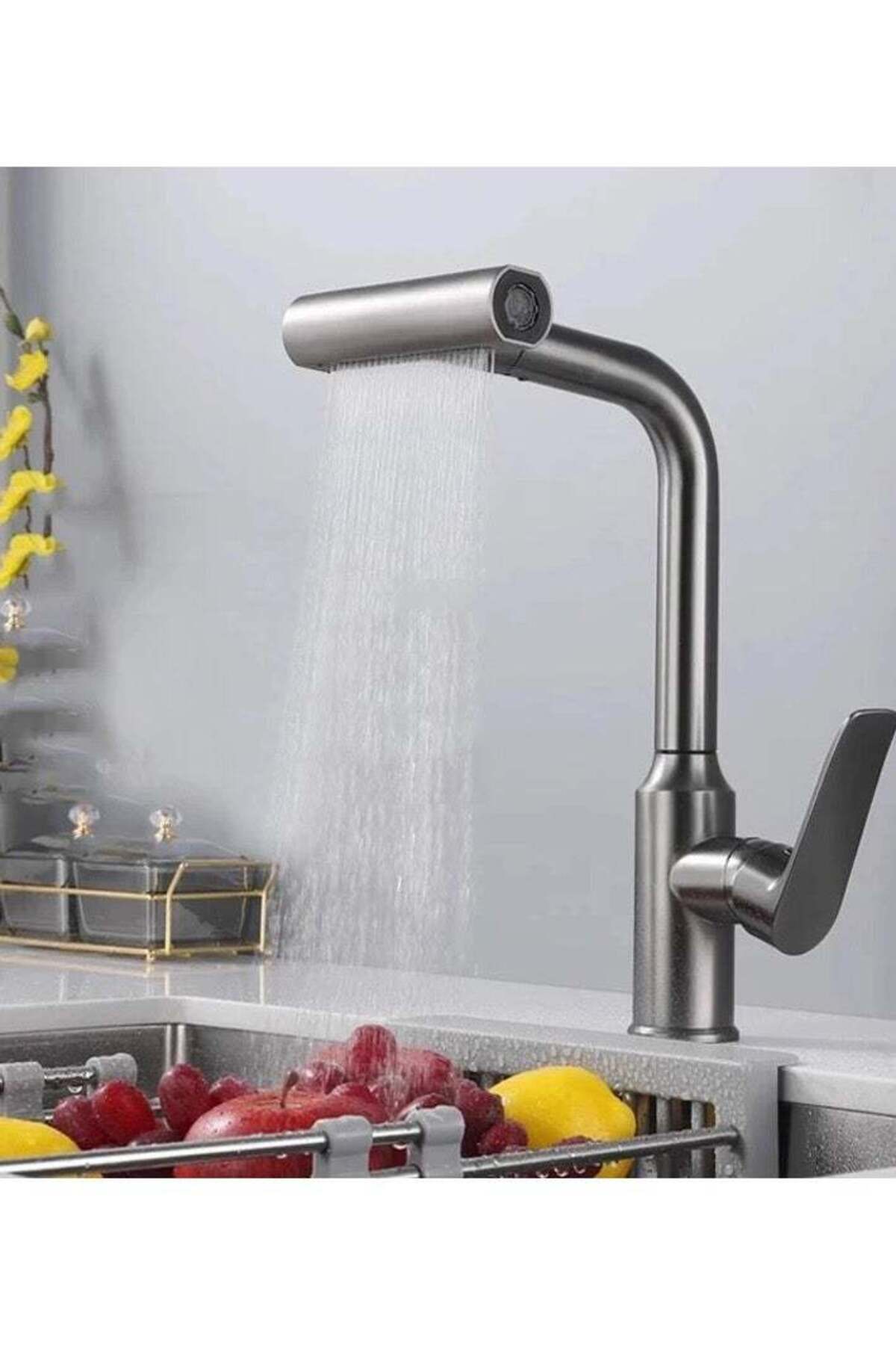 automatic pull-down arm for ease of use; internal flexible retractable hose; multiple water flow modes (spray / regular flow); rust-resistant and easy to clean; suitable for all types of sinks