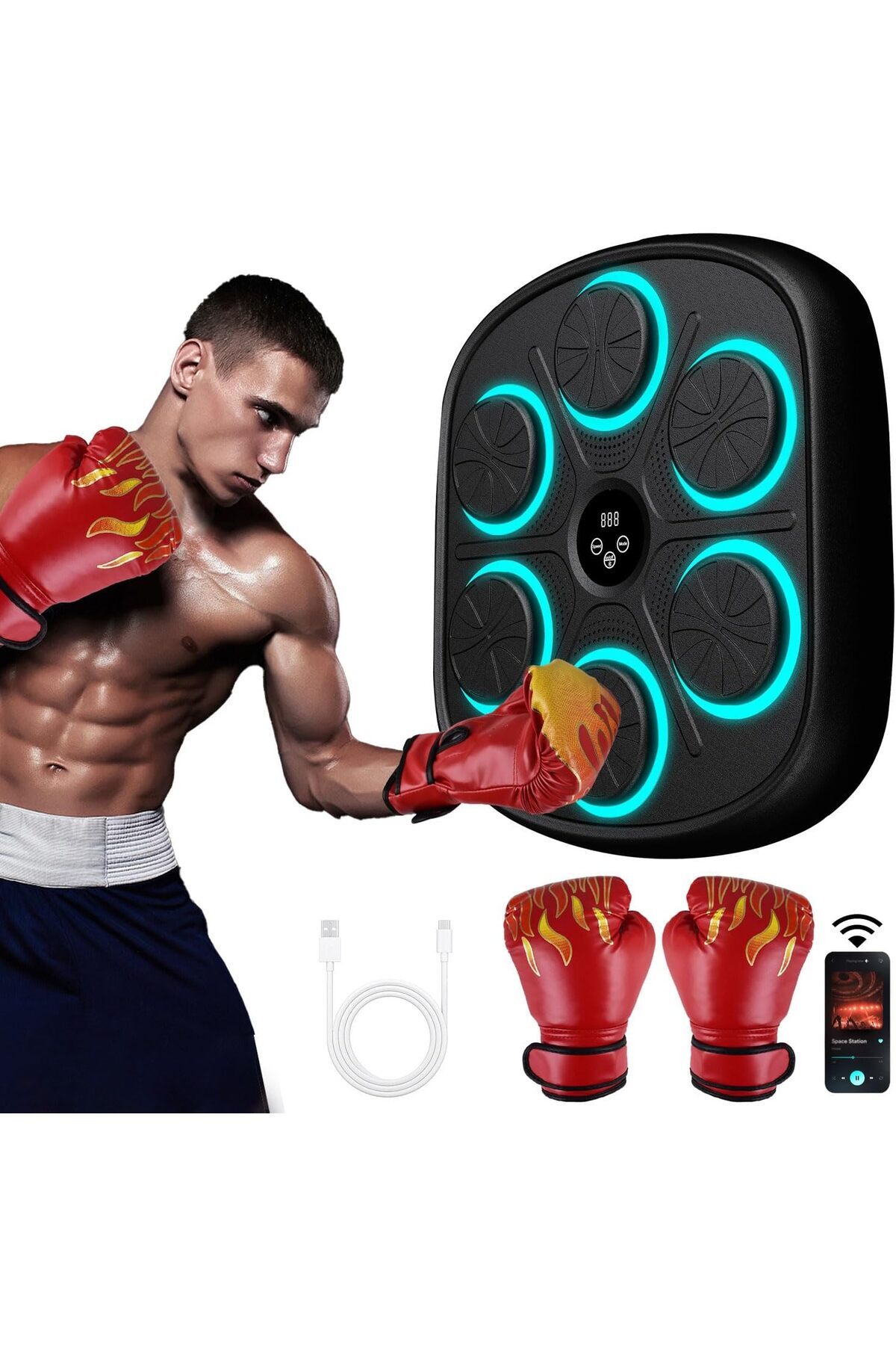 Generic Baswip New Smart Music Boxing Machine with Boxing Gloves, Bluetooth Training Machine with LED Electr features