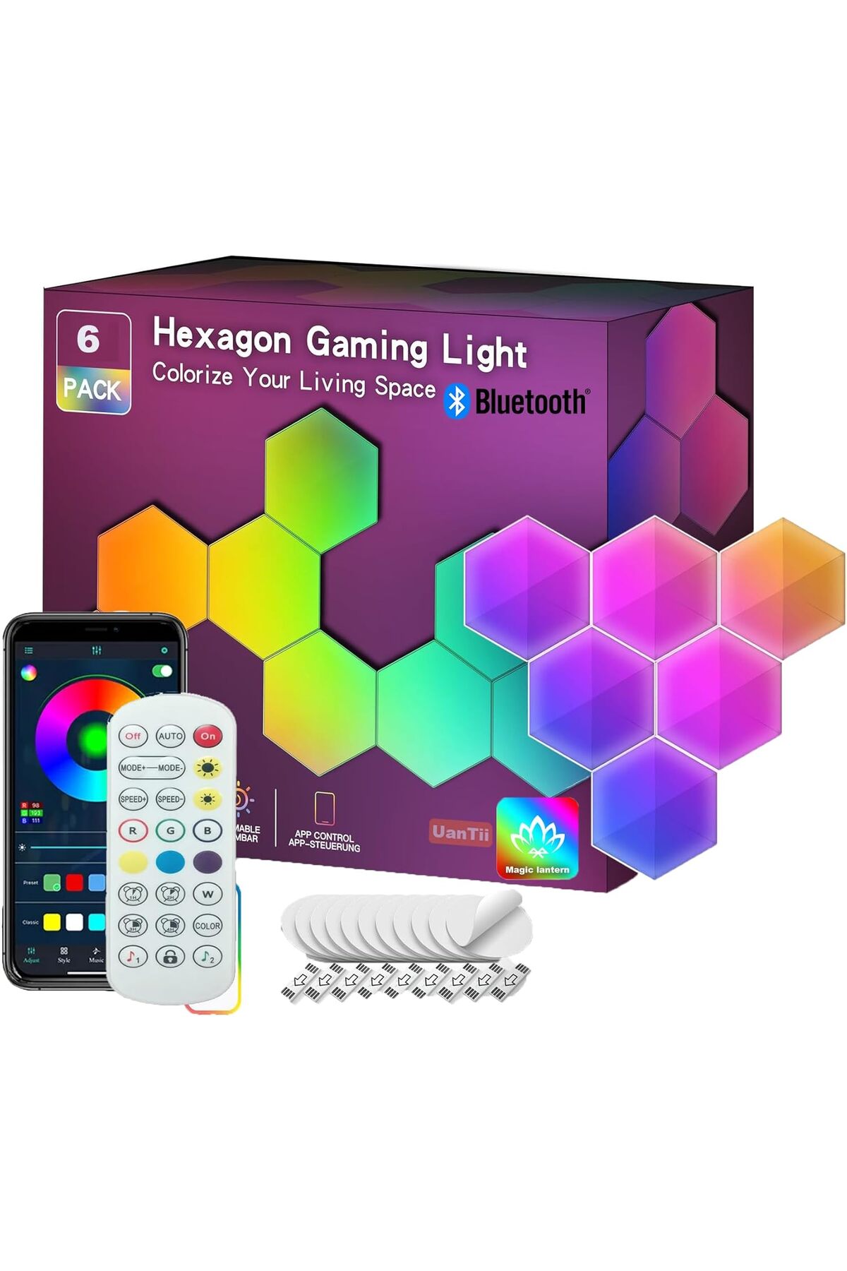 Generic Bluetooth-enabled hexagonal lamp, smart LED night light with Bluetooth app remote control features