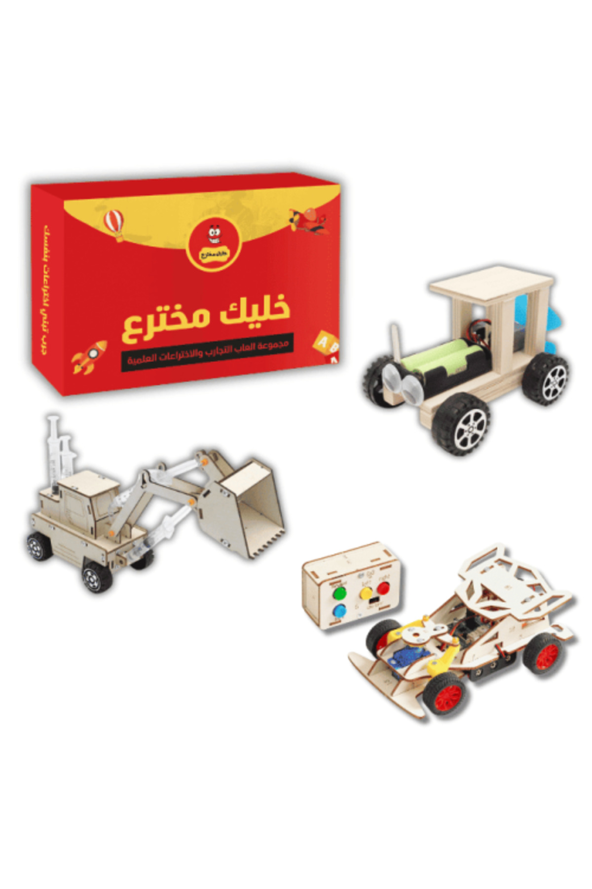 Assemble the wooden pieces according to the instruction manual provided in Arabic, then install the batteries and turn on the product to start interacting with adult supervision when needed.
