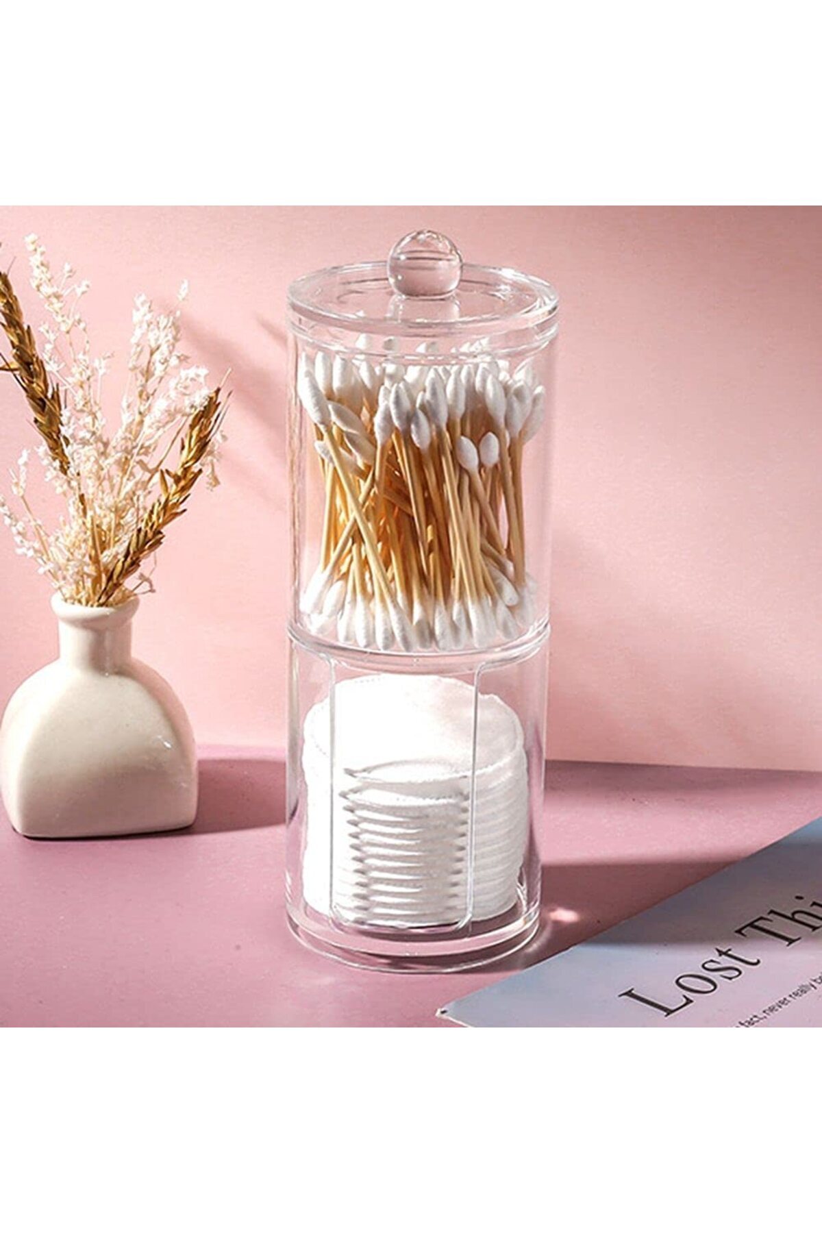 Generic Clear acrylic organizer with two containers for storing and organizing cotton swabs and cotton pads features
