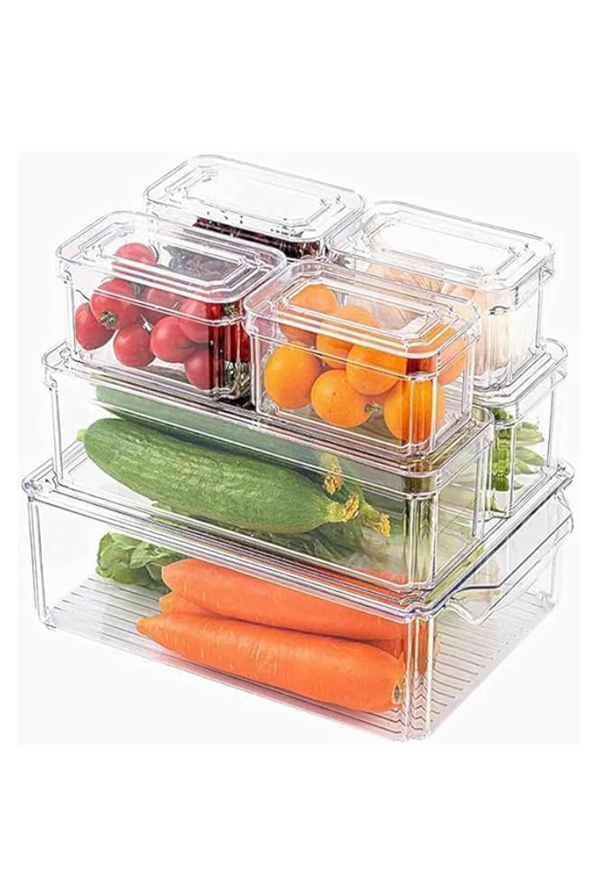 Generic Clear Stackable Fridge Storage Boxes with Lids for Fridge - Set of 7 features