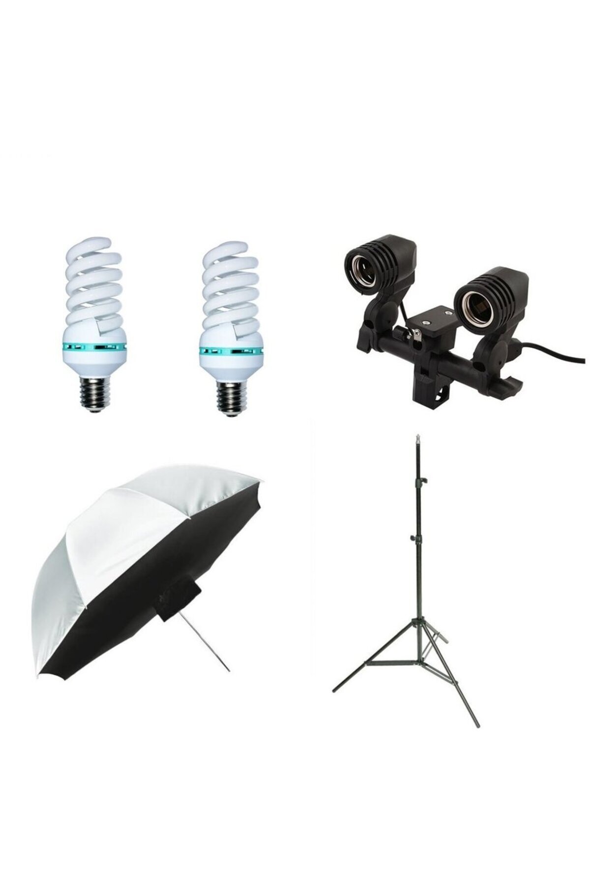 Generic Continuous light kit with 2 bulbs and 84cm front diffusion softbox umbrella features