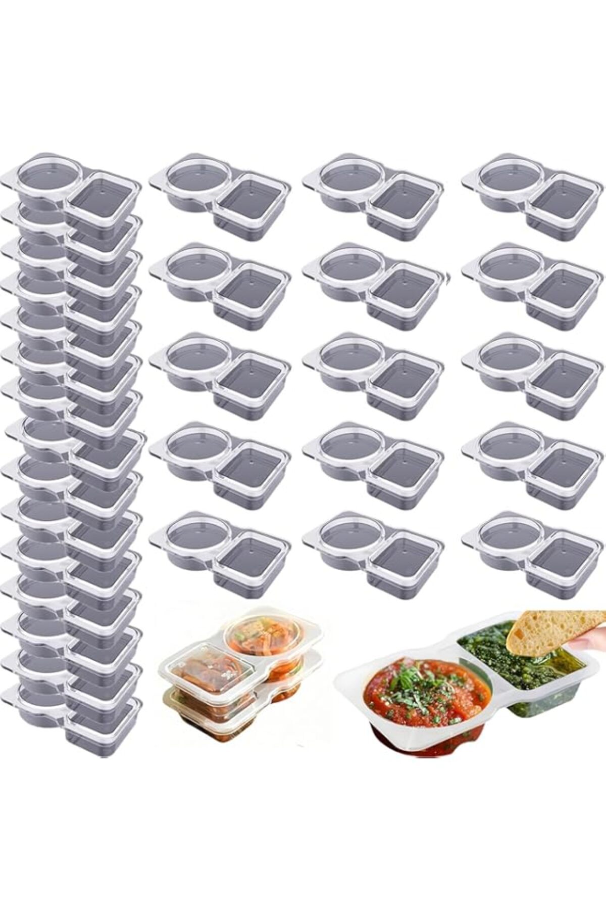 Generic Double Compartment Condiment Containers with Lids,30 Pcs Portion Cups Reusable Plastic Snack Contai features