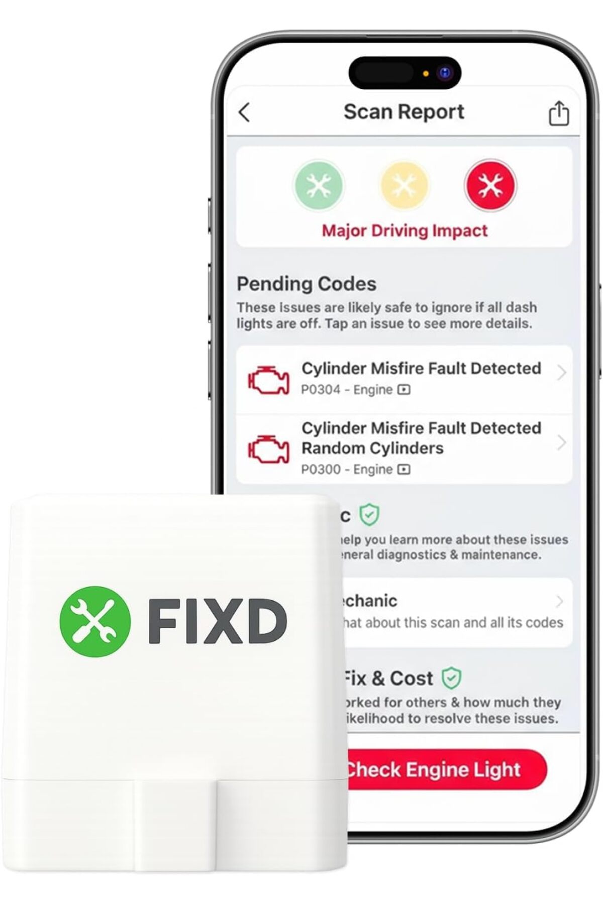 Generic FIXD Bluetooth OBD2 Scanner for Car - Car Code Readers & Scan Tools for iPhone & Android - Wireless