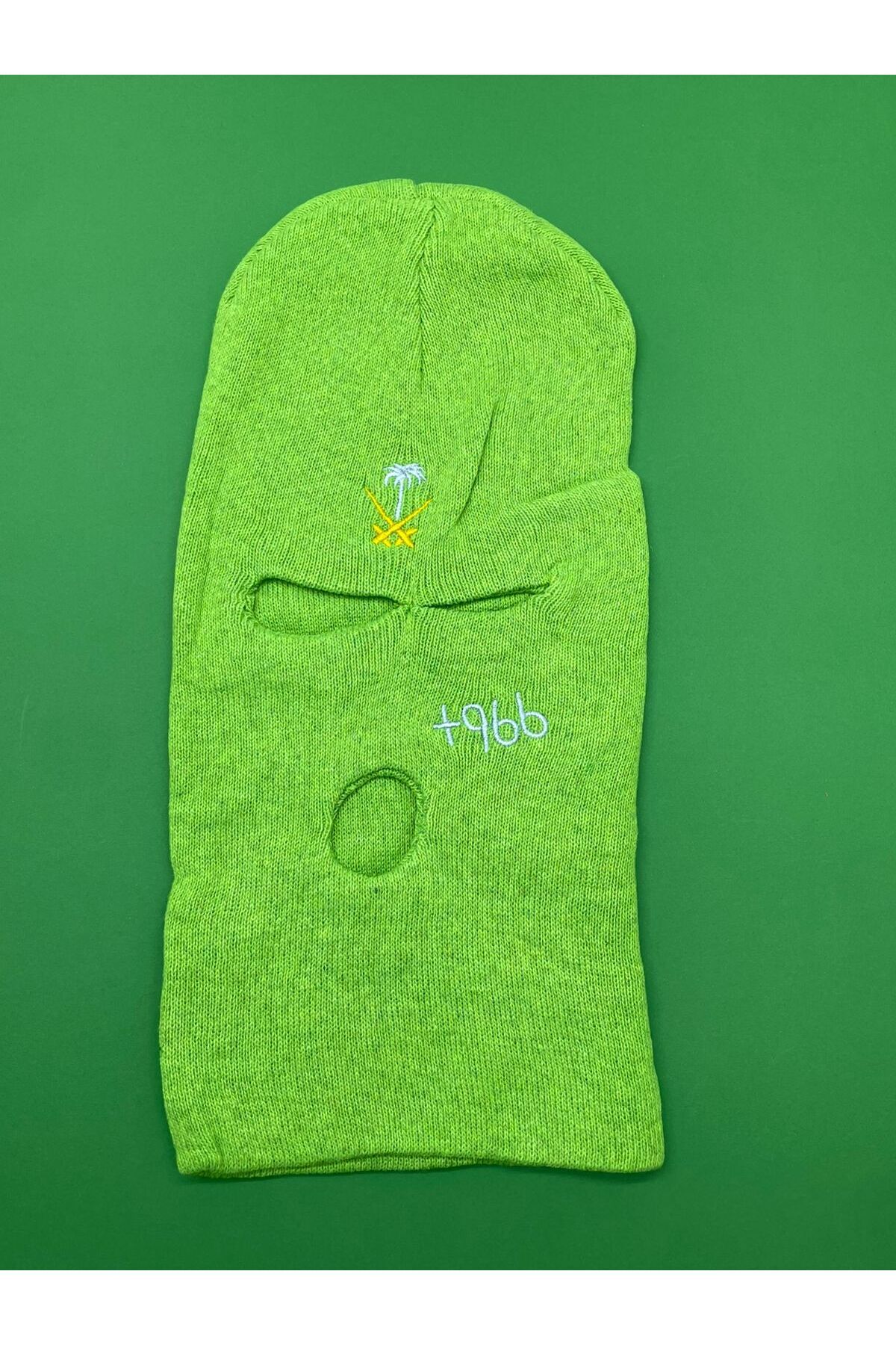 Generic Green cotton mask embroidered with two swords, a palm tree, and the number +966 on the side features