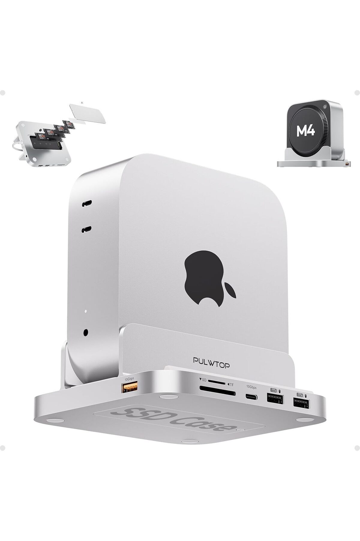 Generic Mac mini M4 Dock with 4TB M.2 SSD Enclosure, 8-in-1 Aluminum Vertical USB-C Hub