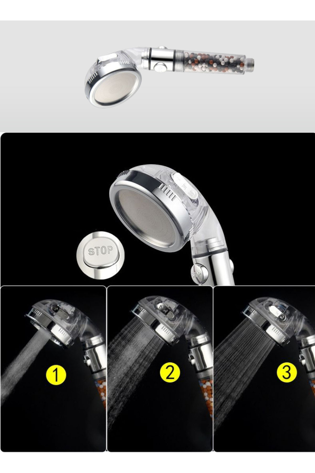 Generic Negative Ion Filter Shower Head – 3 Modes with Water Stop Button features