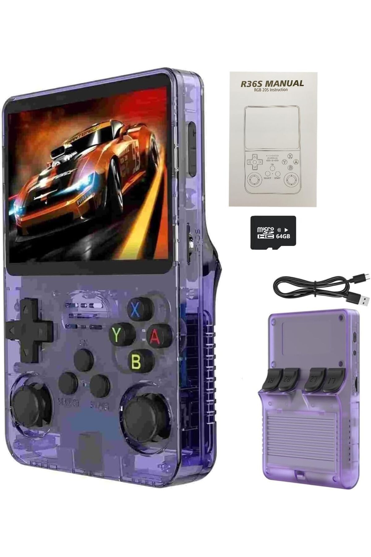 Generic R36s retro Handheld Gaming Console with 64G Cards, Portable Retro Game Consoles Linux Gaming System features
