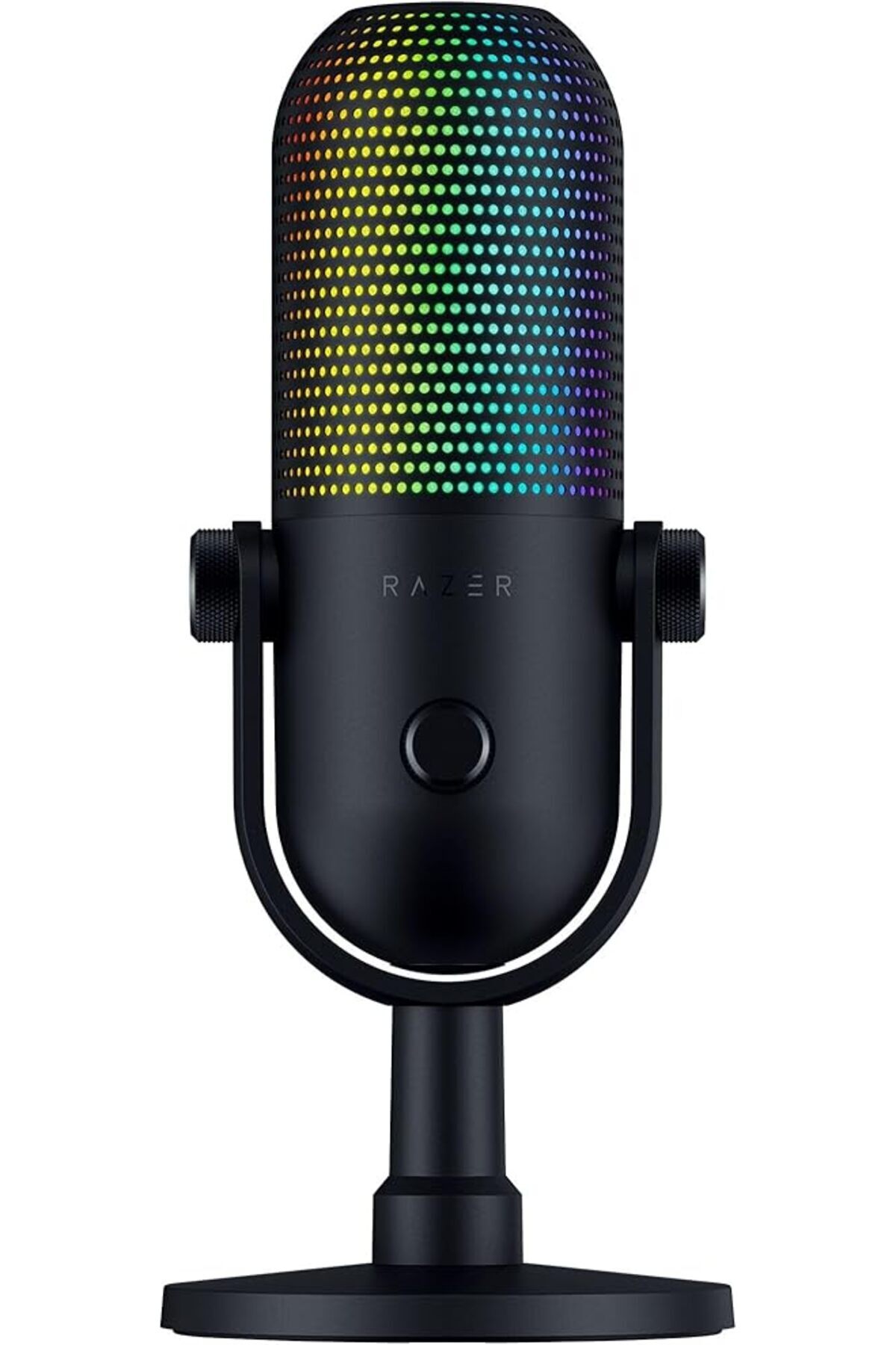 Generic RGB USB Microphone with Reactive Lighting, Tap-to-Mute Sensor, Condenser Mic with Digital Gain Limit features