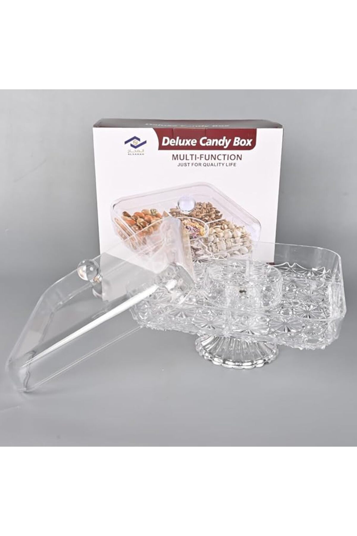 Generic Square Divided Acrylic Nuts Plate with Base features