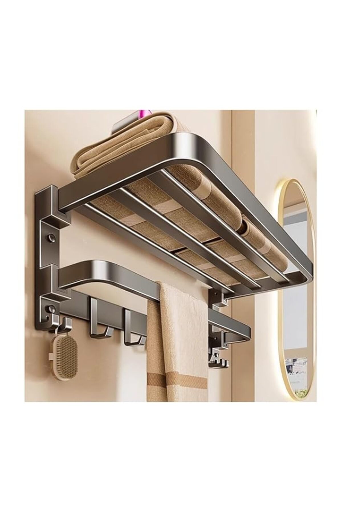 Generic Strayelf Towel Racks for Bathroom,Double Foldable Towel Shelf with Towel Bar and 7 Hooks, Towel Sto features