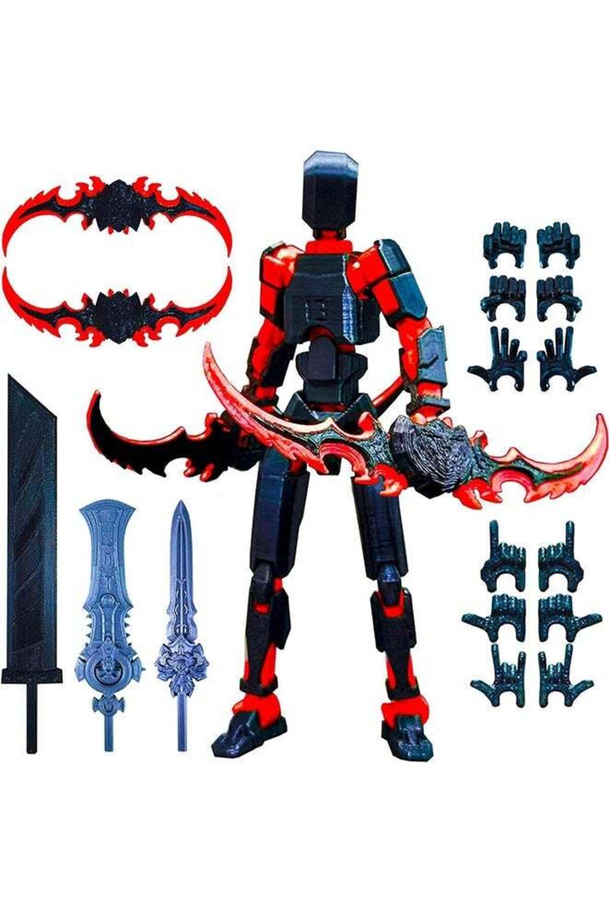 Weapon Package Included: 2 x Double Color Demon Swords, 1 x Black Two-Handed Great Sword, 1 x Silver Long Sword, 1 x Silver Big Sword. All Dummy are produced using 3D printers and manually assembled with high-quality environmental materials & plastic materials, ensuring the product has a sturdy structure and vibrant colors. Each joint of the action figure set is fully movable, allowing for flexible bending and swinging.