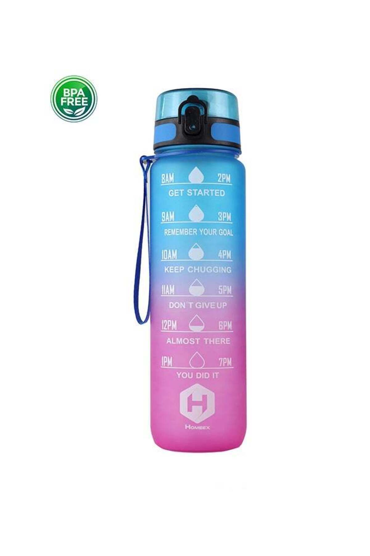 Generic Toshionics 1000ml Motivational Water Bottle with Time Markers, One-Touch Lockable Lid and One Carry