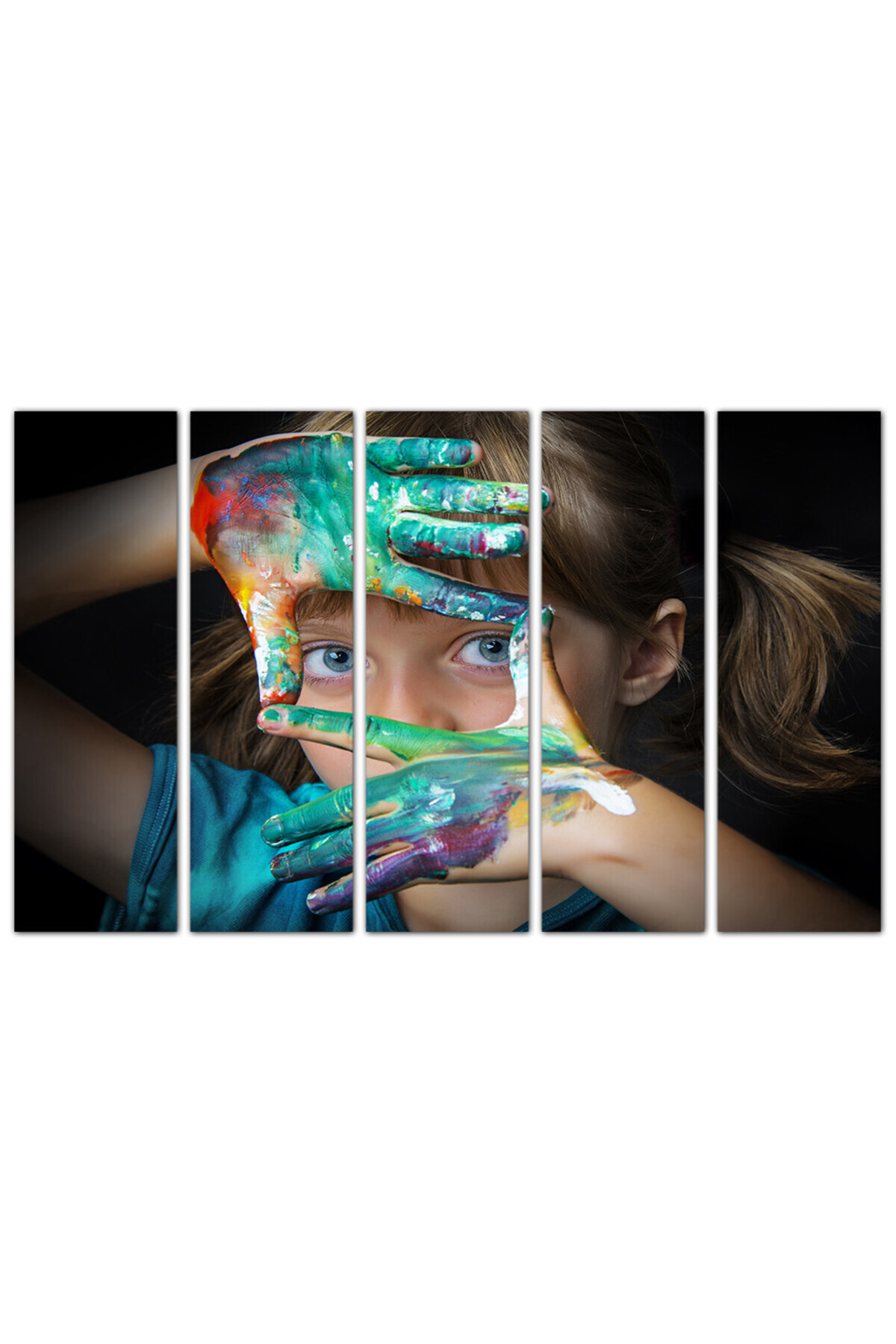 Generic Wall panel - Picture of a child playing with colors - ck109 - Divided into five equal pieces features