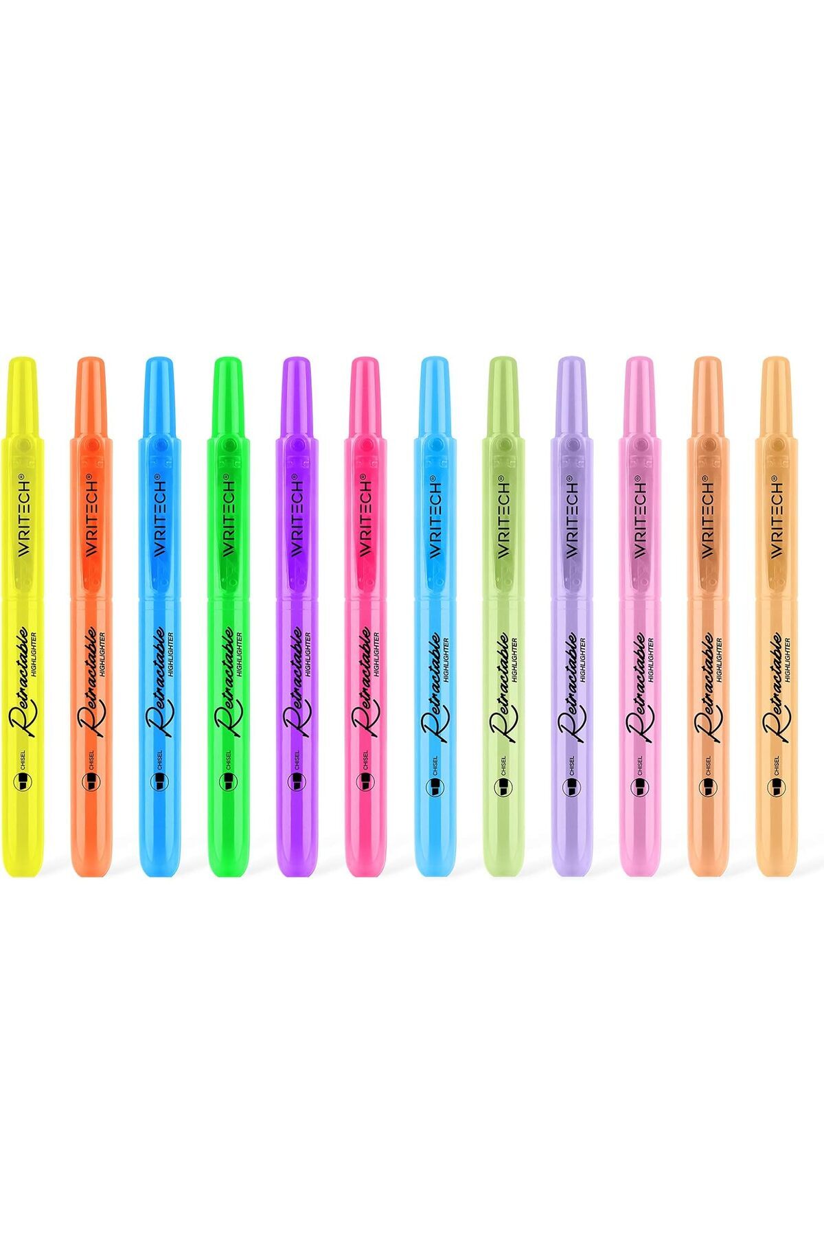 Generic WRITECH 12-Color Retractable Highlighters (Neon + Pastel) - Chisel Tip, No-Smear features