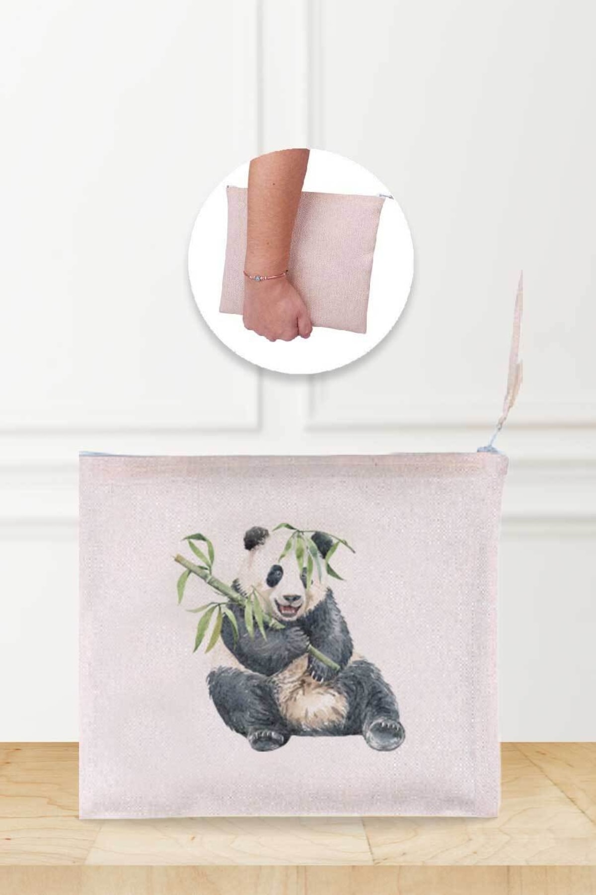 Gizeo Concept Cute Panda Patterned Linen Makeup Bag