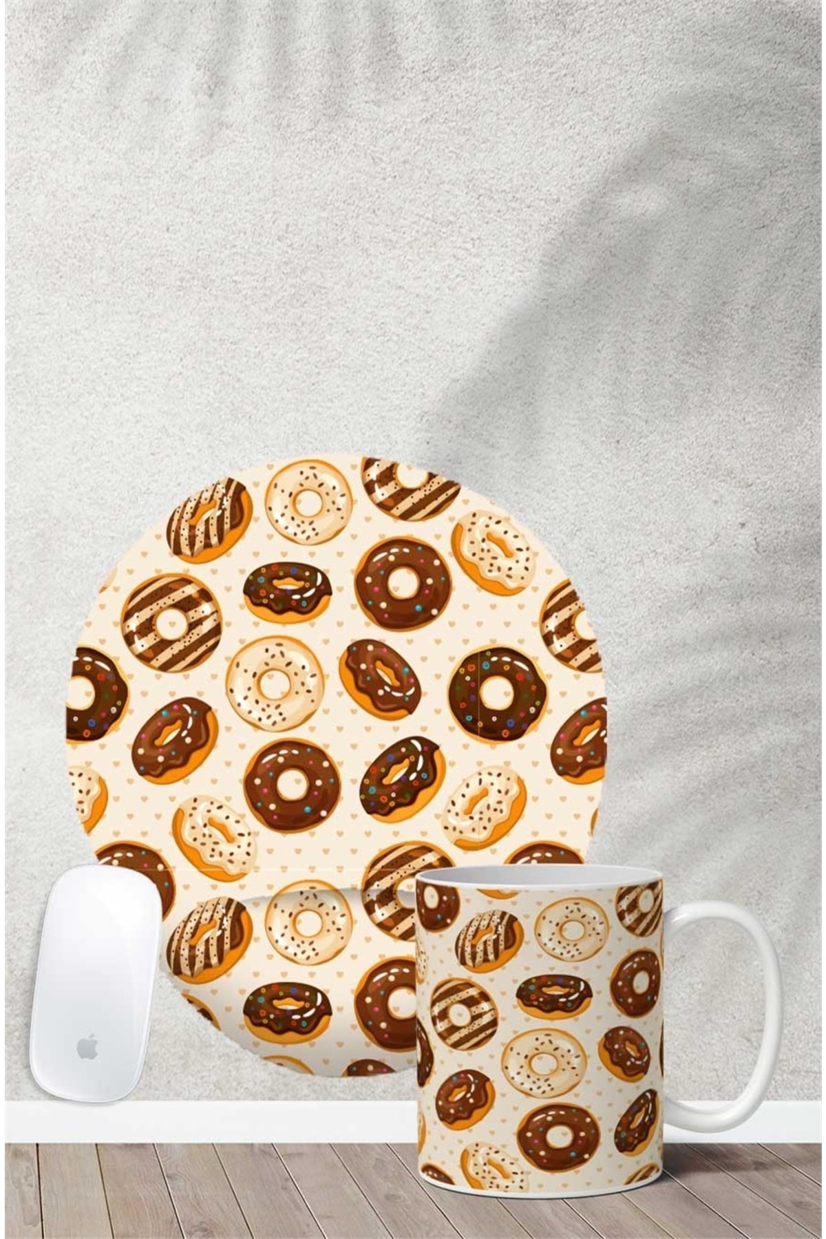 Gizeo Concept Donut Patterned Wrist Support Mouse Pad Mug Set