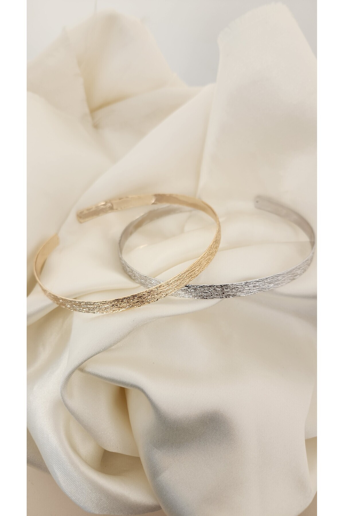 GLİTHE.CO Women's Silver Tree Bark Pattern Ribbon Choker