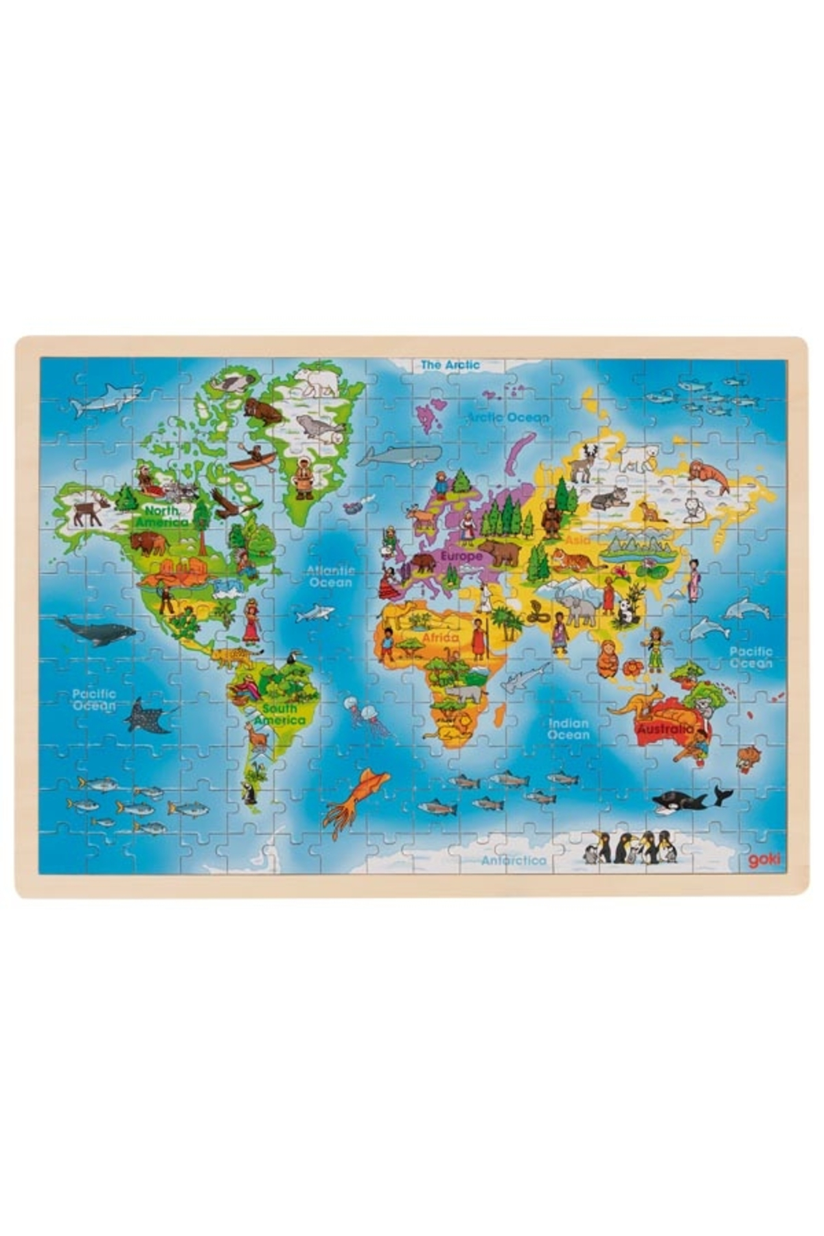 Goki Framed Puzzle - World Map features