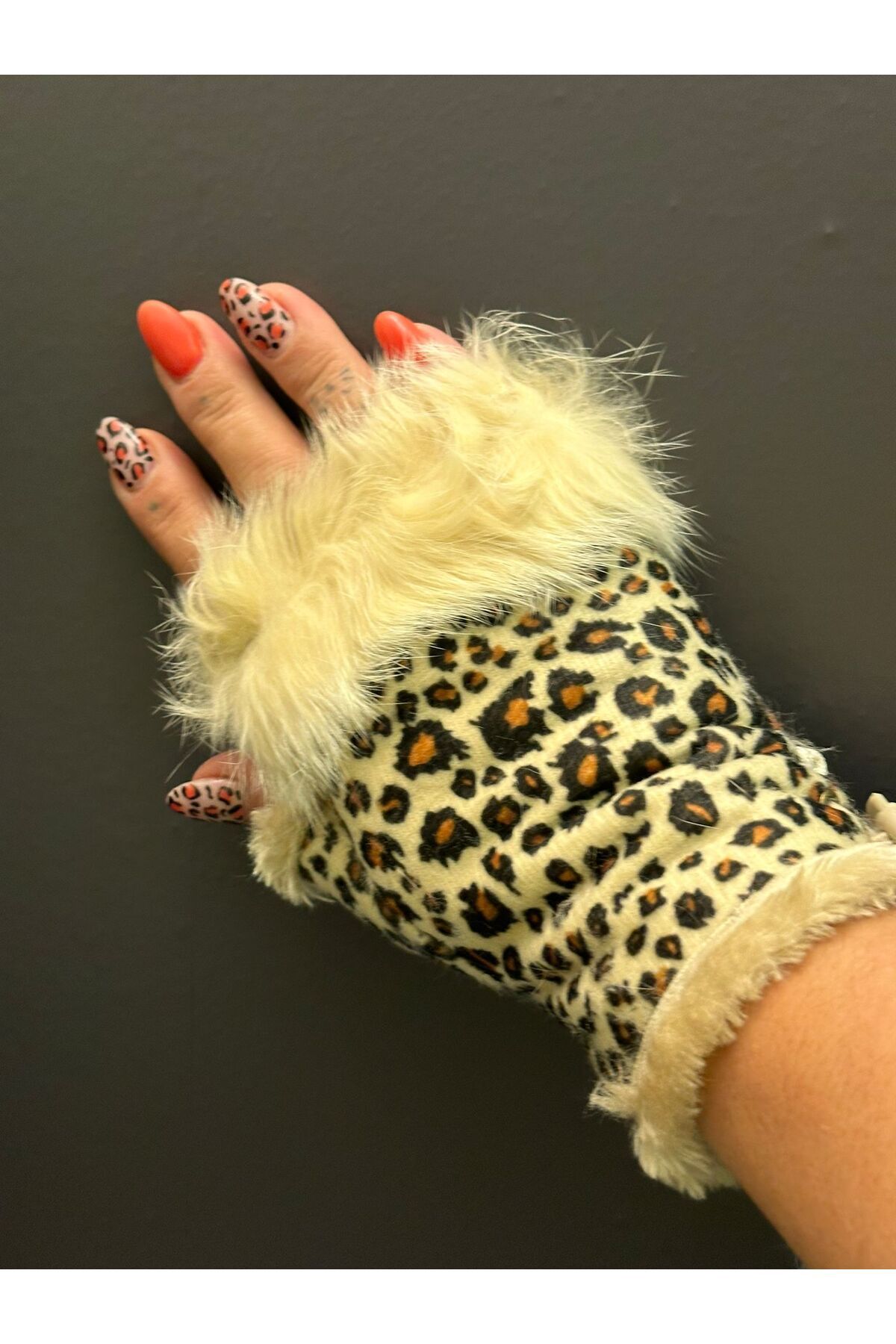 Gönülden Tasarım Leopard Pattern Fingered Gloves