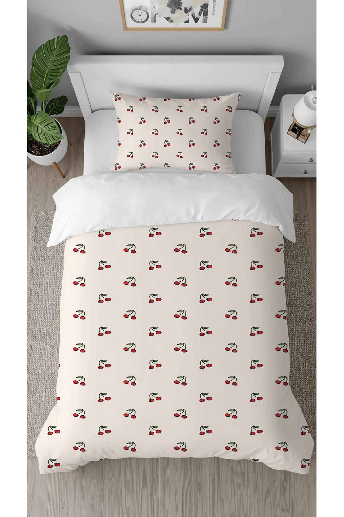 GREENDECOR Cherry Cherry Fruit Beige Patterned Printed Specially Designed Single Style Stylish Duvet Cover Set Without Sheets