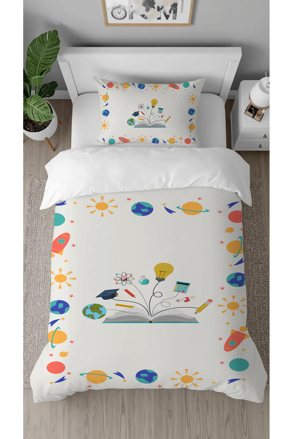 GREENDECOR School Book Graduation World Science Specially Designed Printed Sheetless Single Child Bedding Set features