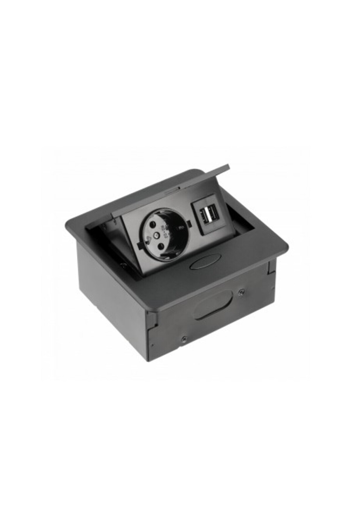 1 x Schuko, 2 x USB 5 V 2 A connectors, compact rectangular shape, black color