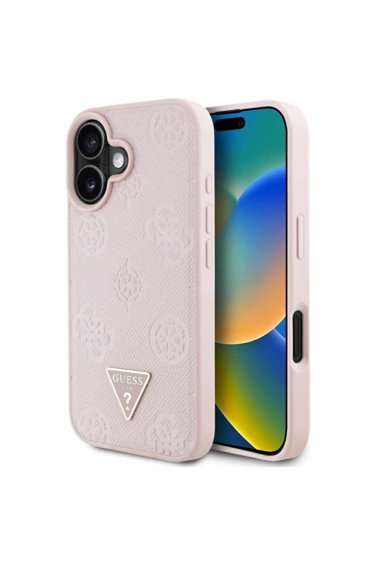 Guess Case for iPhone 16, Grained Triangle, Pink features