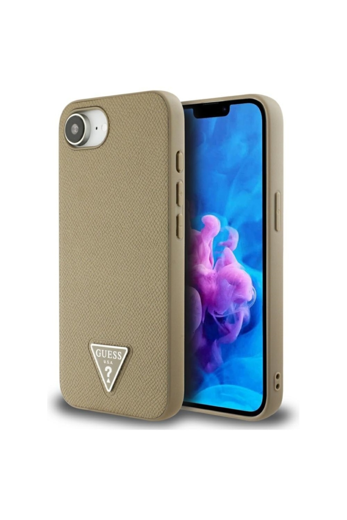 Guess Case for iPhone 16e, Grained Triangle, Brown features