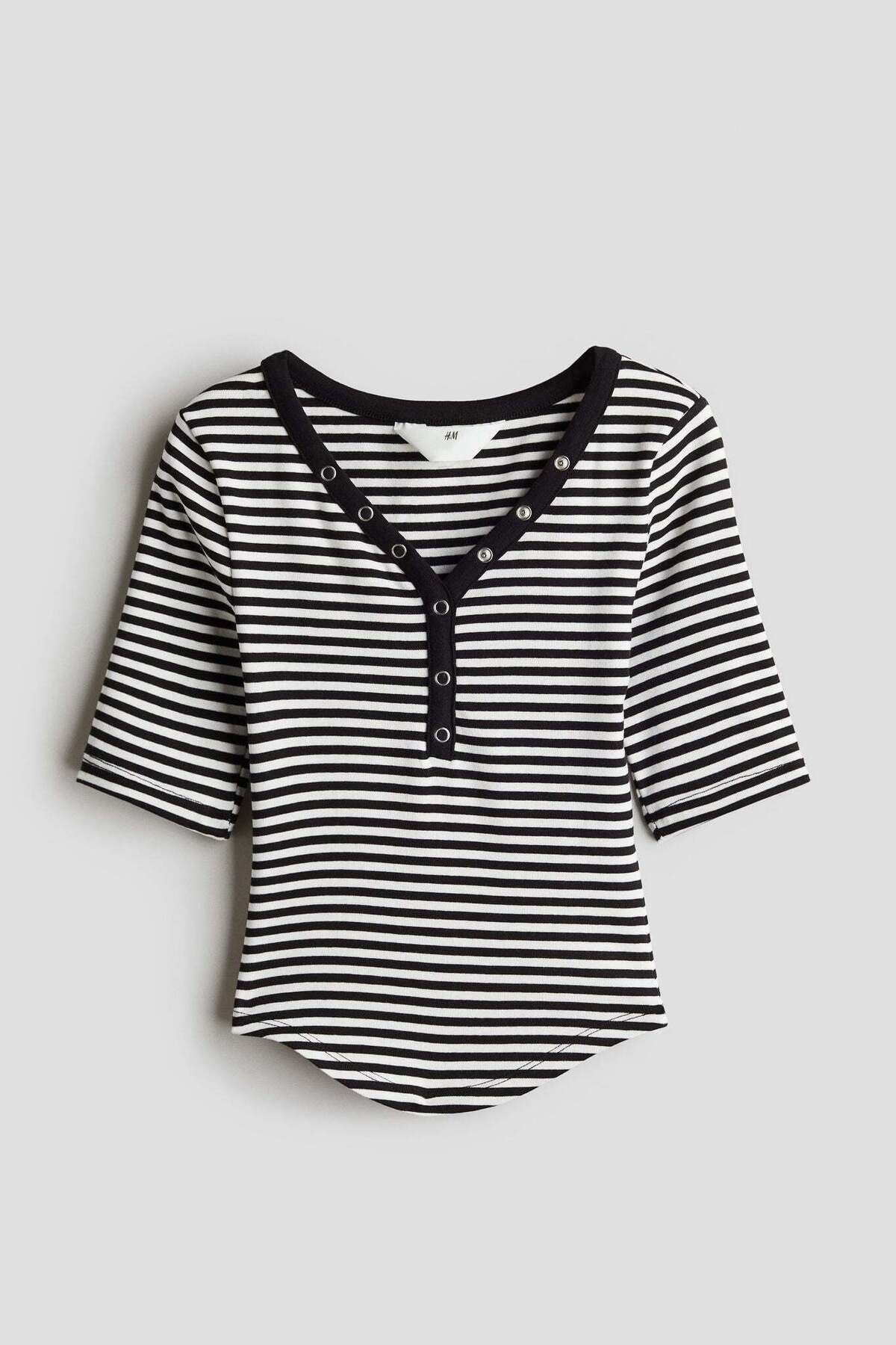 H&M Decorative-placket ribbed top features