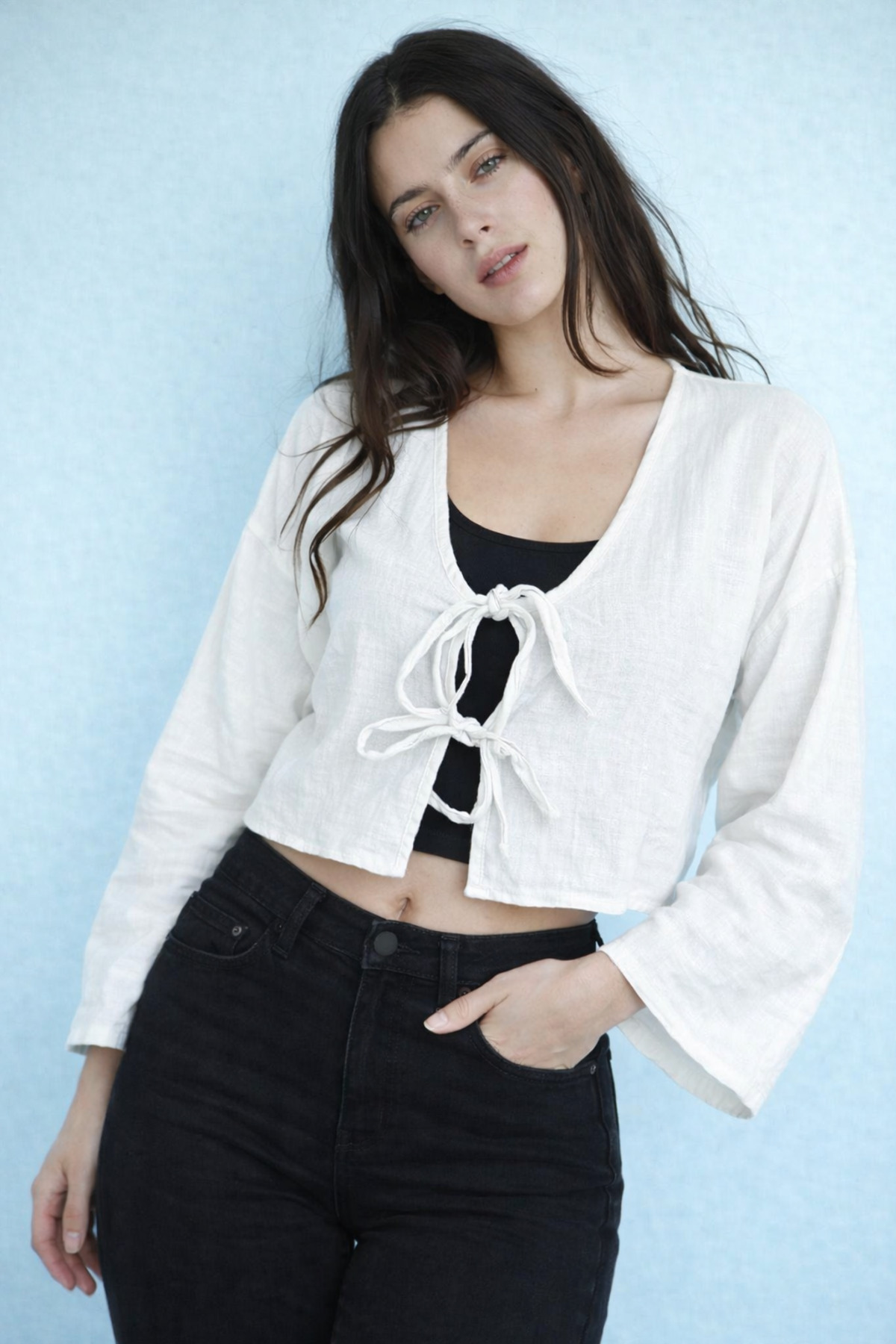 HAKKE Front Tie Blouse features