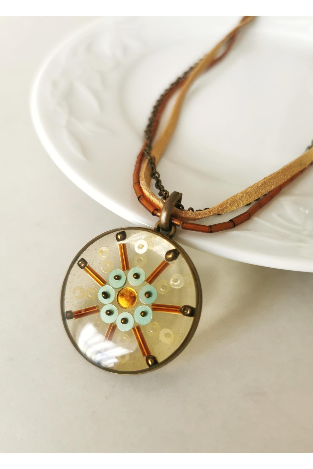 Halley Concept Mandala Patterned Special Design Epoxy Necklace features