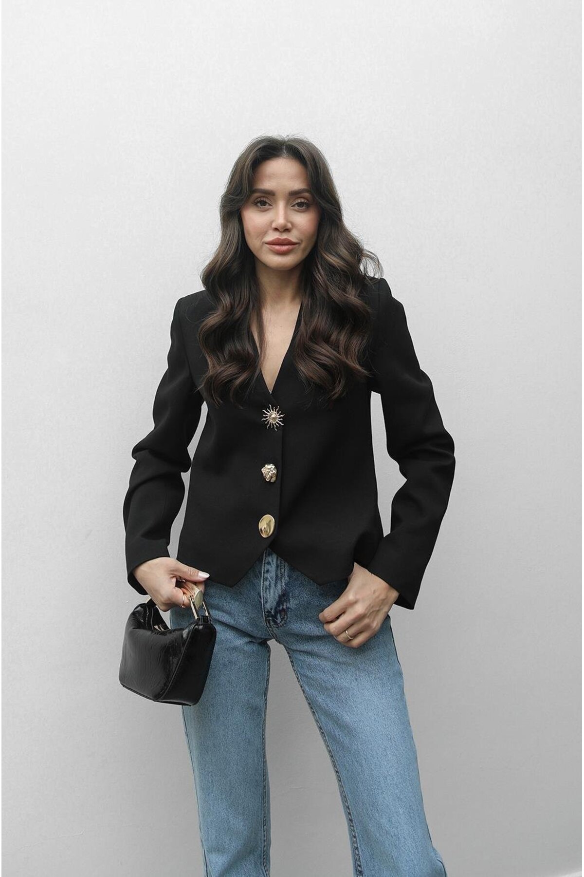 Havoş Black Button Detailed V-Neck Jacket features