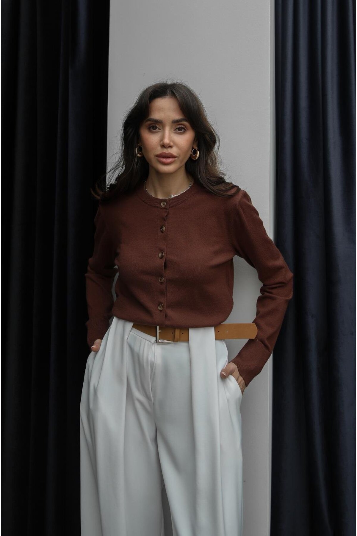 Havoş Brown Rickles Buttoned Basic Cardigan features