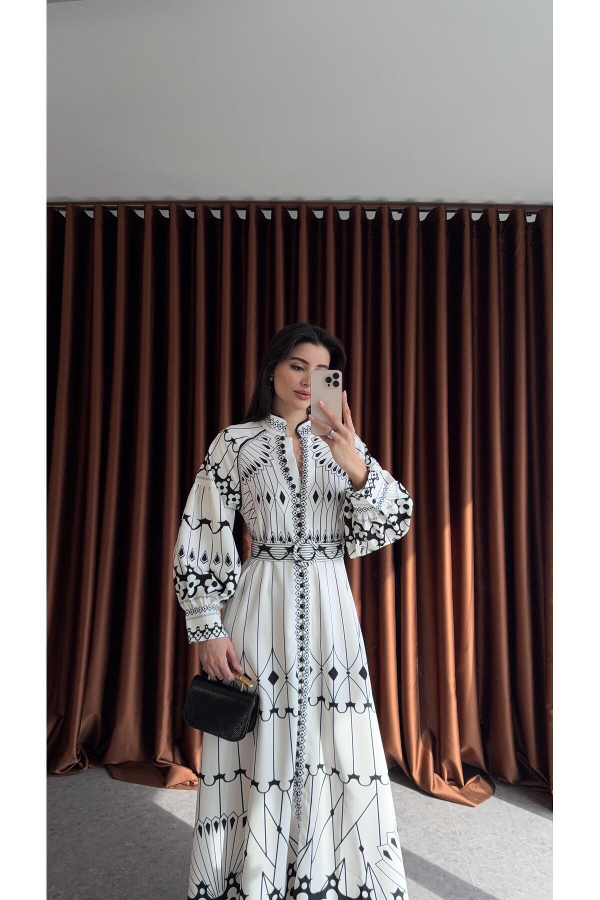 HAZELANNA Black Patterned Imported Dress