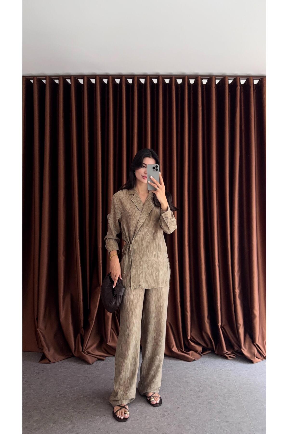 HAZELANNA Patterned Khaki Suit