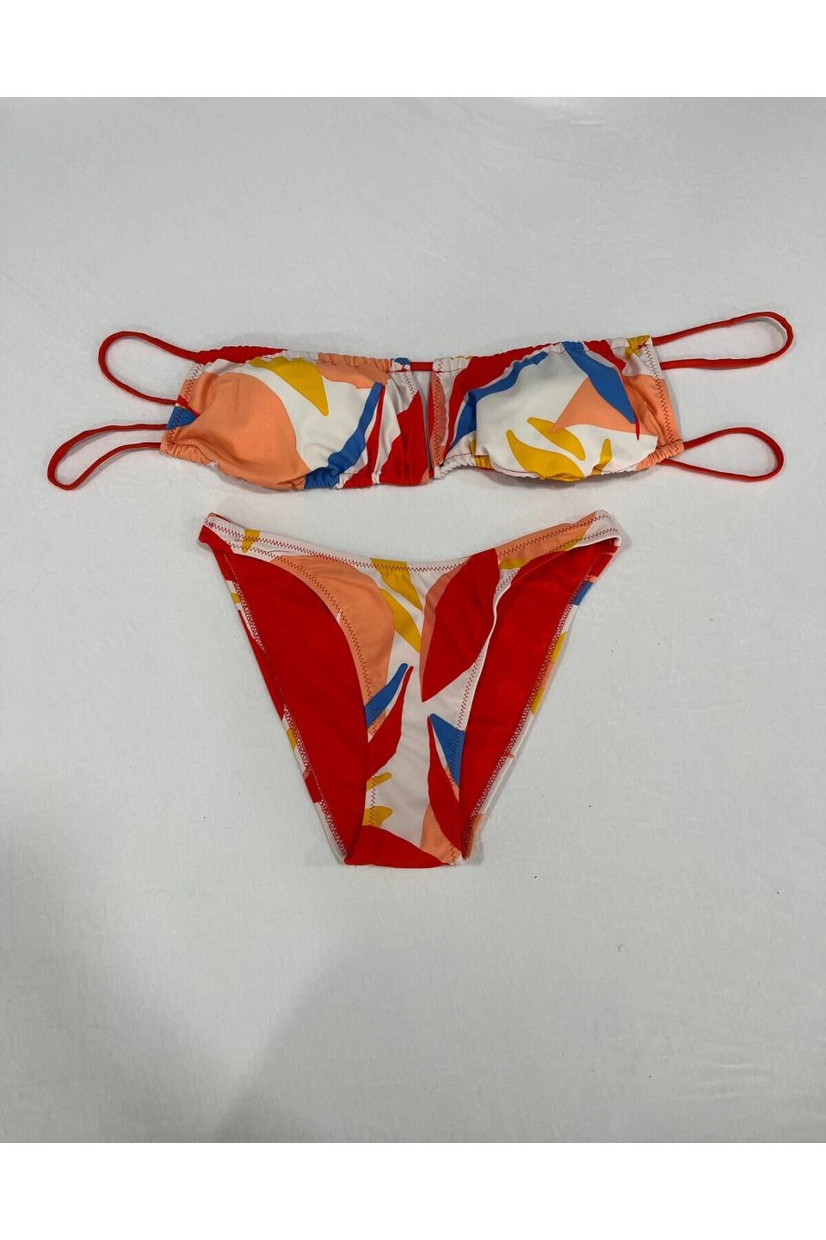 hazelin Multicolored Tropical Pattern Lined Bikini Set features