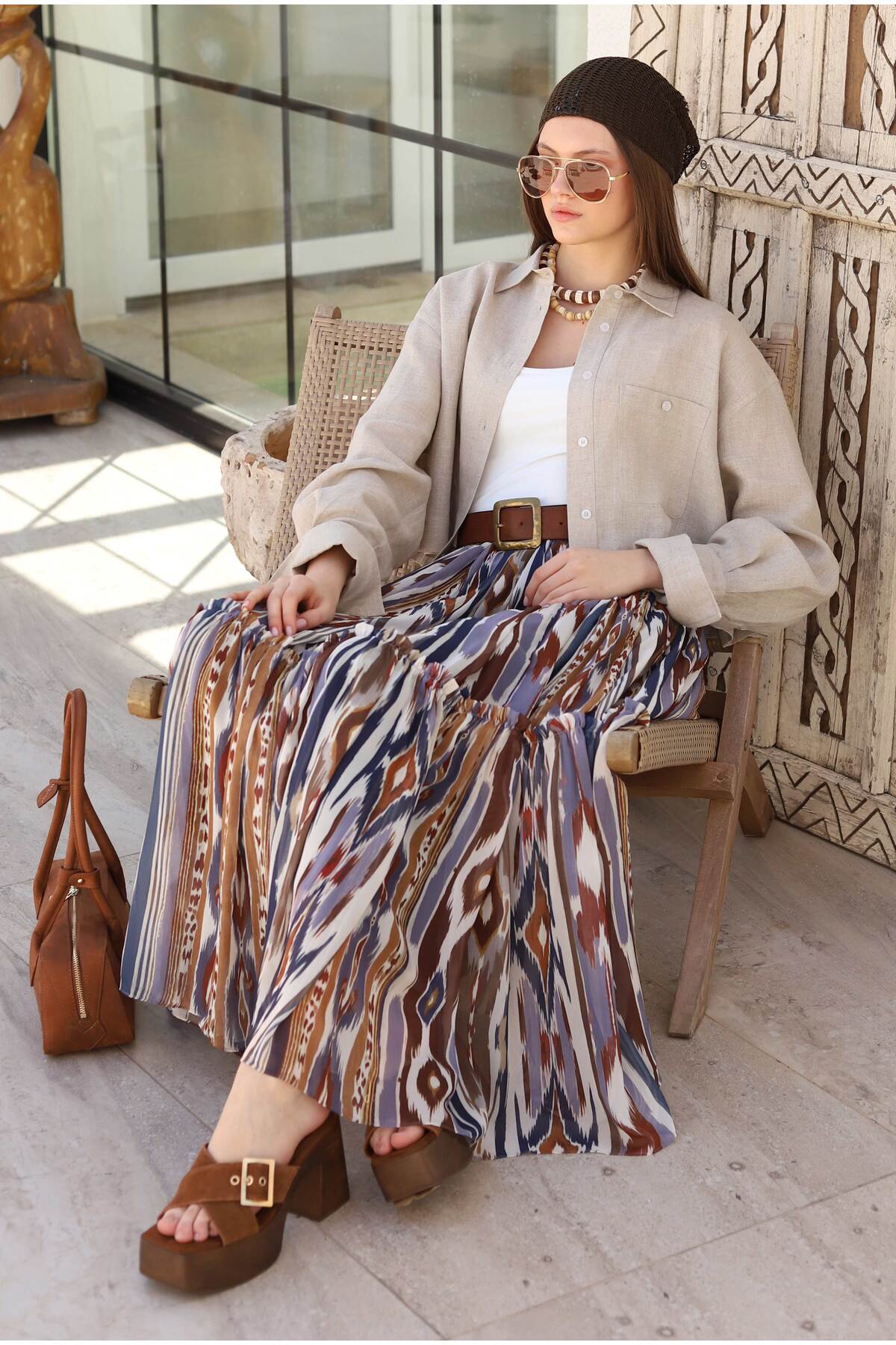 HEQA Layered Chiffon Skirt Bark Pattern features