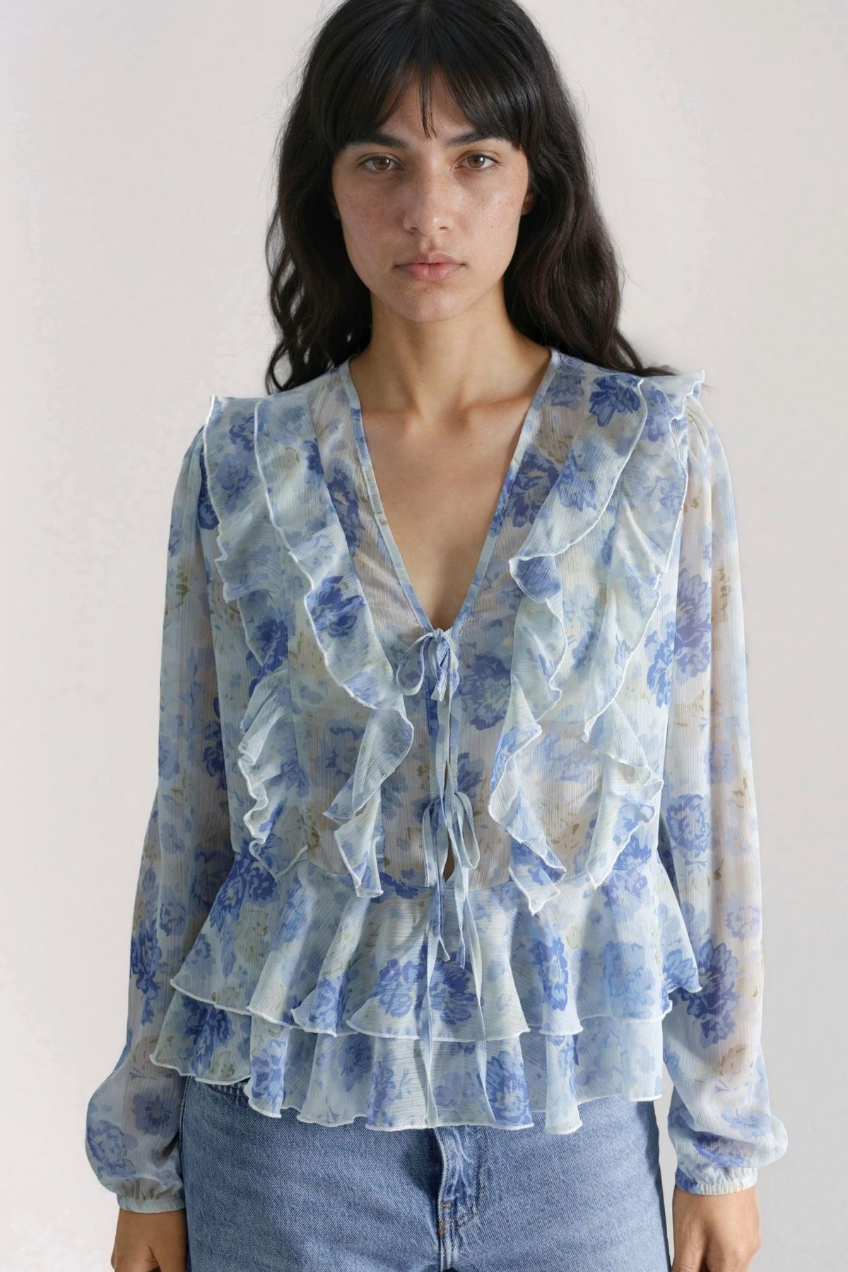 Hiccup Frilly V-Neck Patterned Blouse features