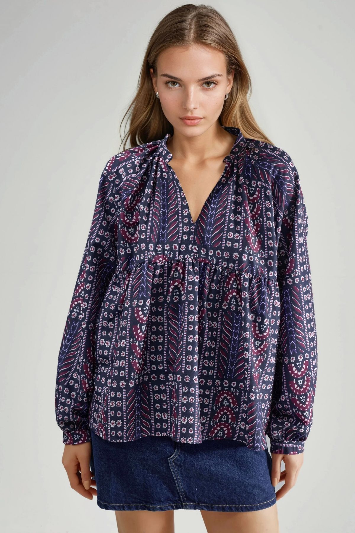 Hiccup Patterned blouse with puff sleeves features