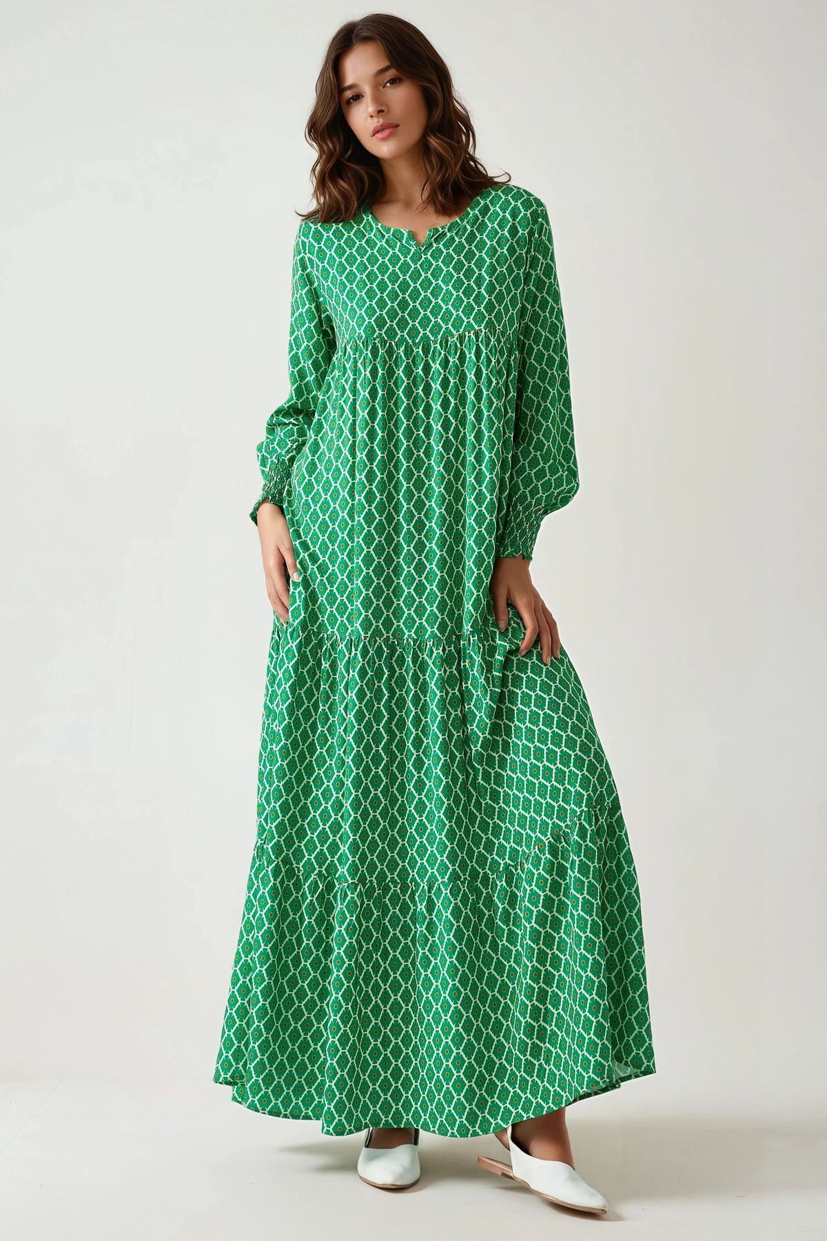 Hiccup Patterned Round Neck Viscose Modest Dress features