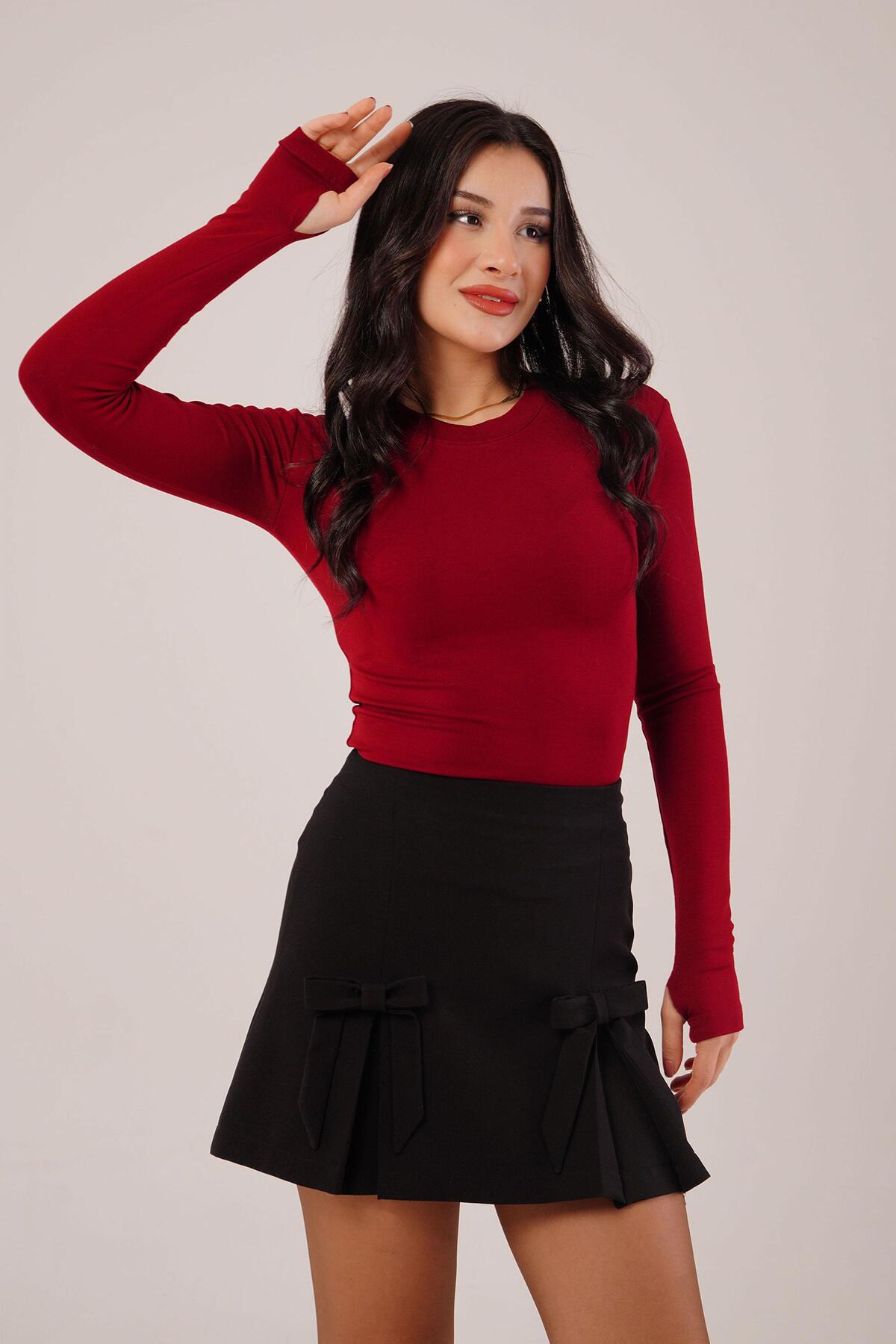 Hipo Trend Long Sleeve Basic Burgundy Blouse