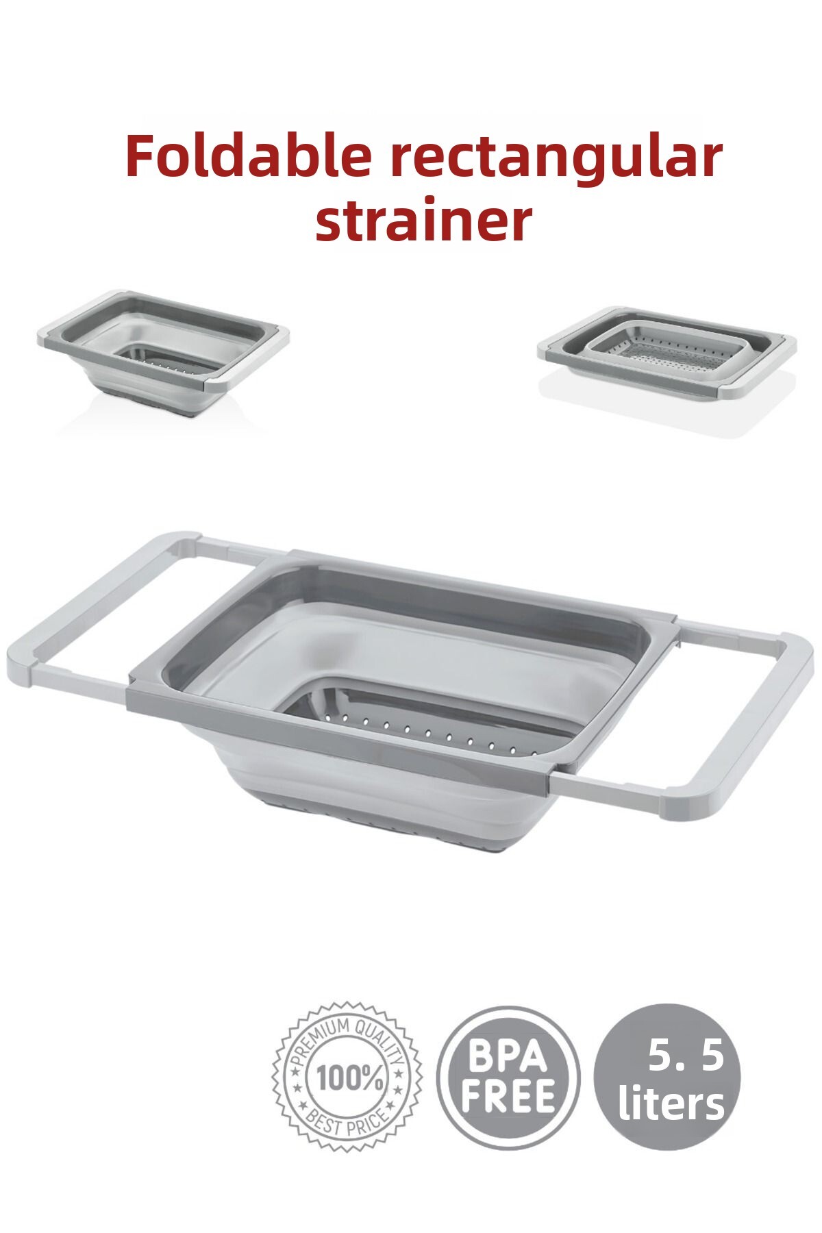 HOMENIVA 5.5 Lt Gray Foldable Rectangular Strainer features