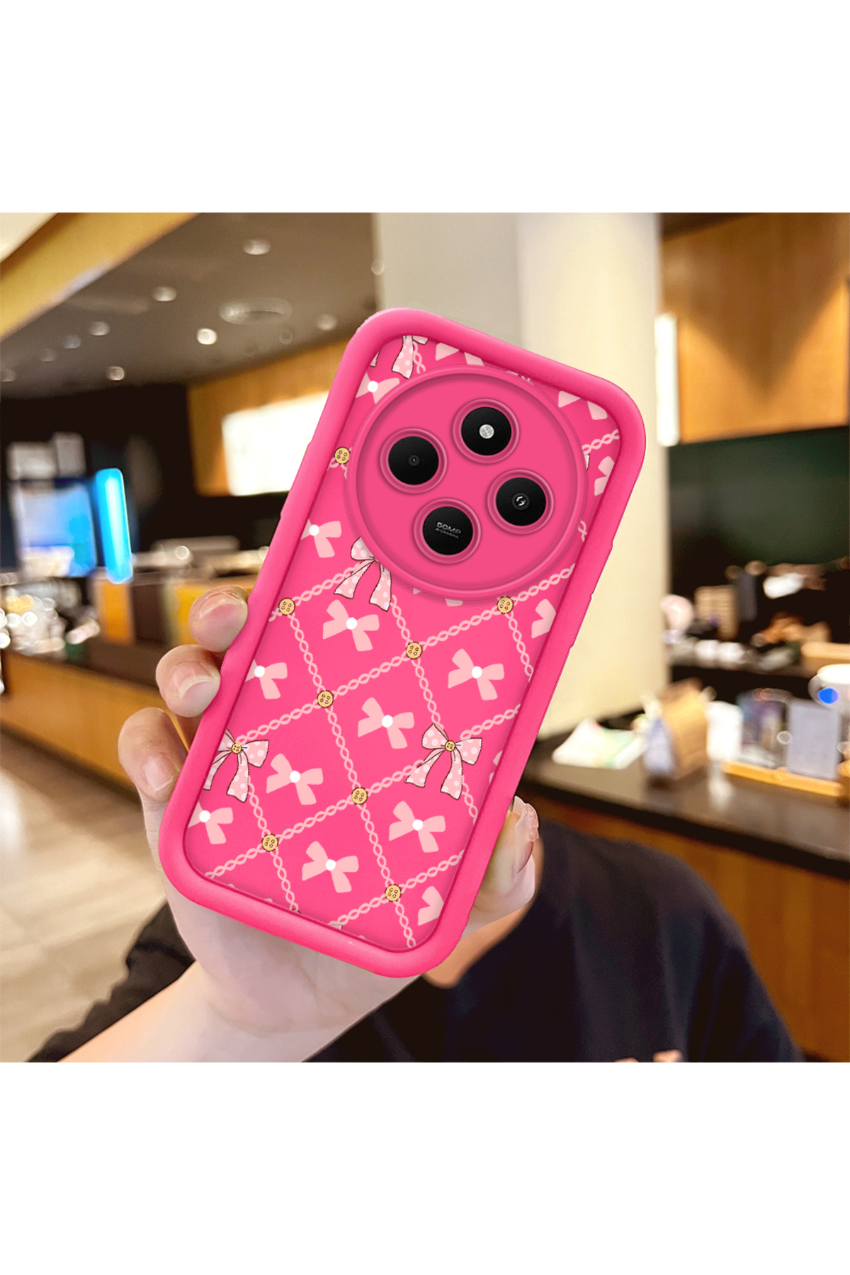 Hontinga Redmi 14C Compatible Silicone Shockproof Rose Red Phone Case Bow Pattern features