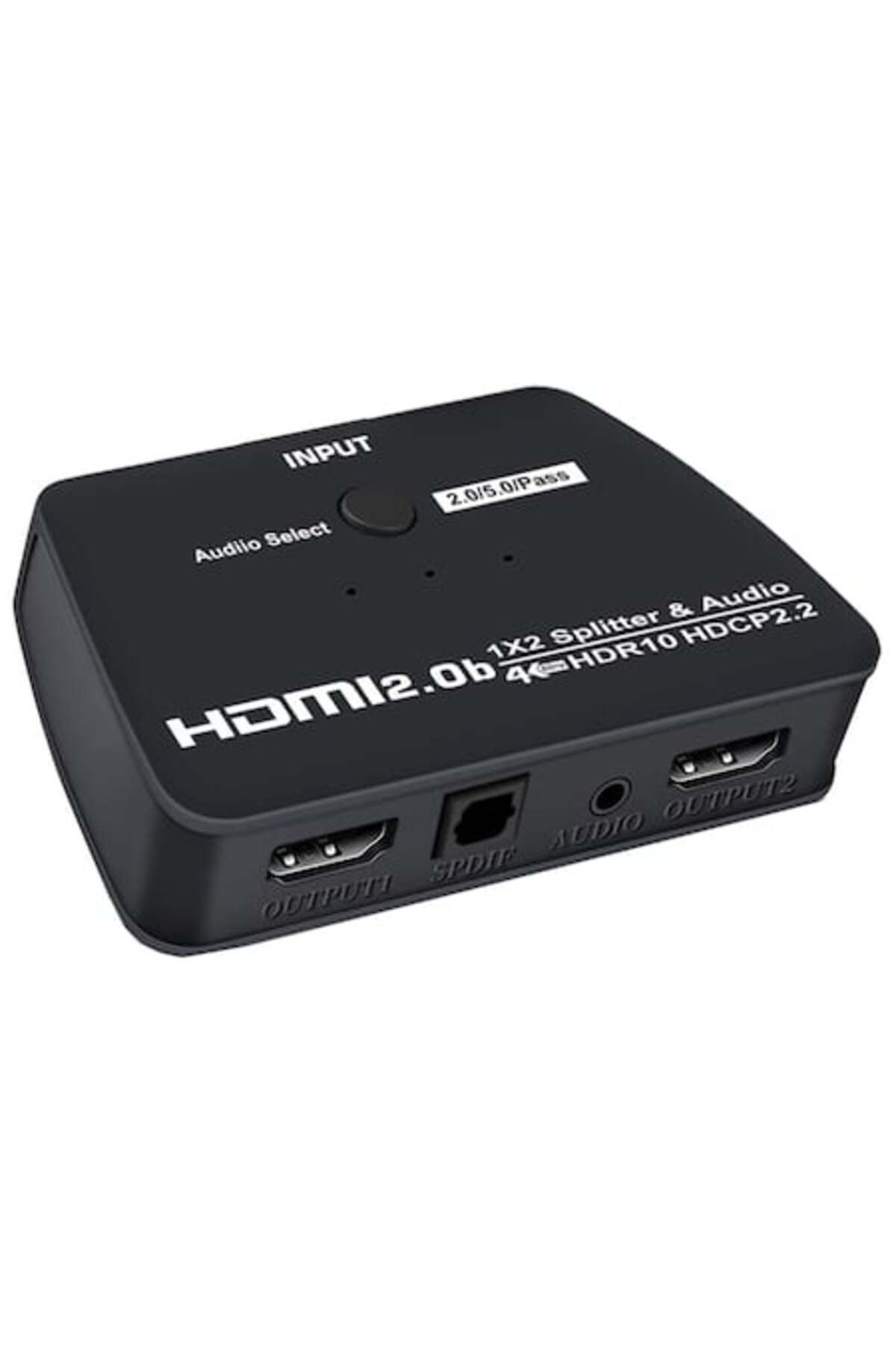 HOPE R HDMI 2.0 Switch, 1 input and 2 outputs, supports UHD 4Kx2K@60Hz, Audio Extractor SPDIF + R/L, black,