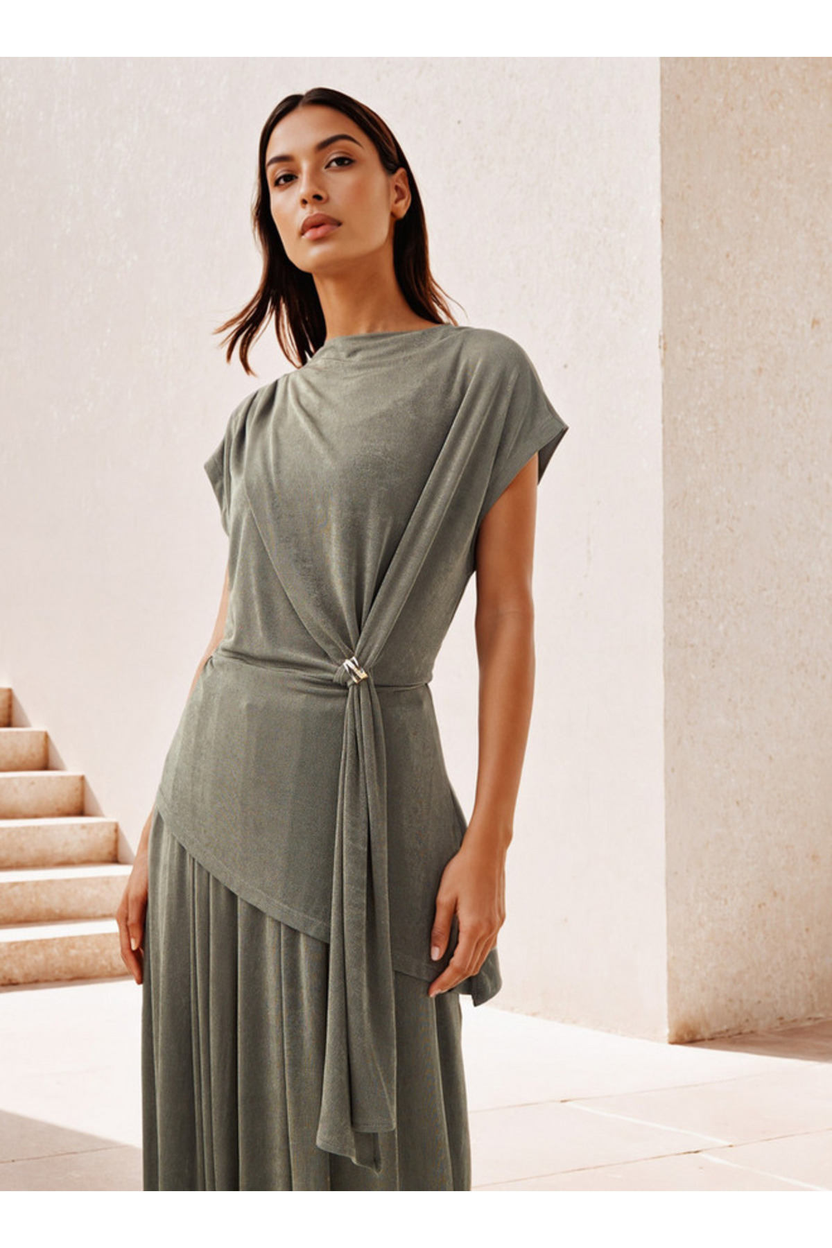 Iconic Draped Clasp Top features