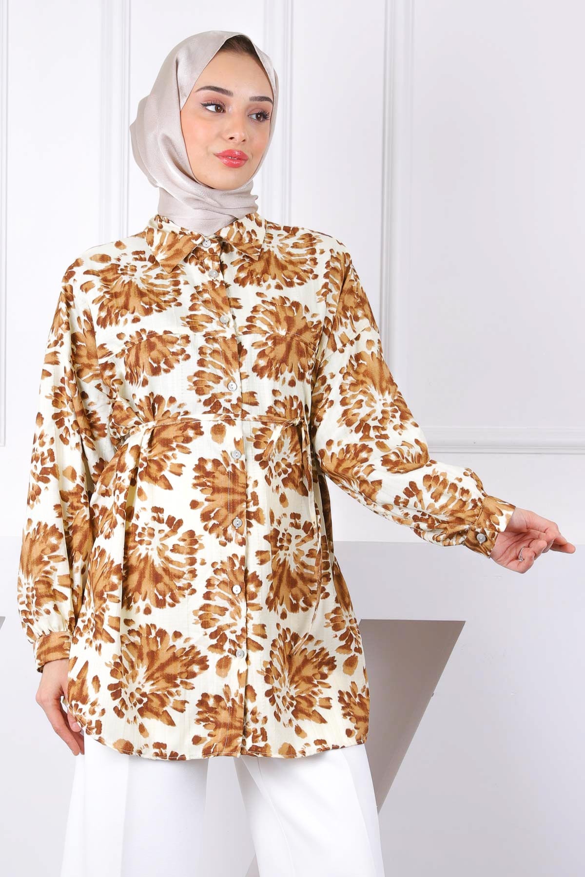 İmajButik Brown Patterned Buttoned Shirt features