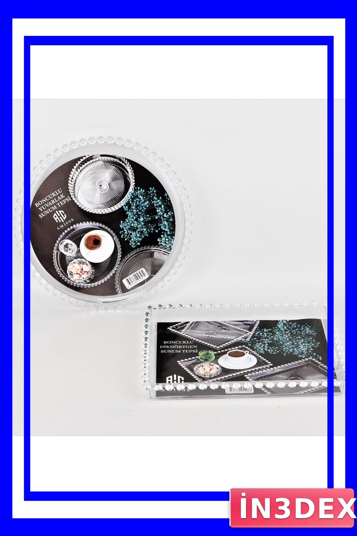 İN3DEX Beaded Rectangular Presentation Tray features
